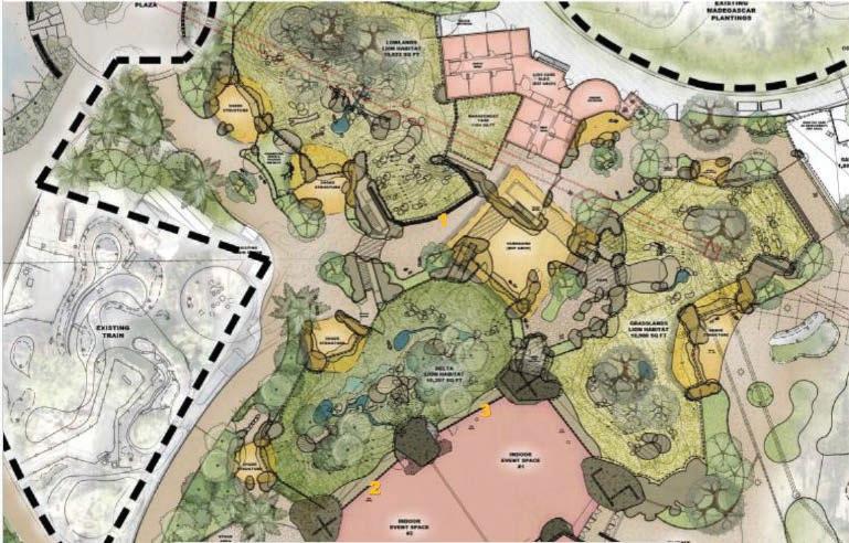 Linked by elevated “catwalks” that allow lions to traverse and access di erent habitats safely, Lion Ridge will o er unmatched adaptability. This dynamic system will set a new standard in animal care, while captivating guests with meaningful, close-up encounters that deepen their connection to lions and their conservation.