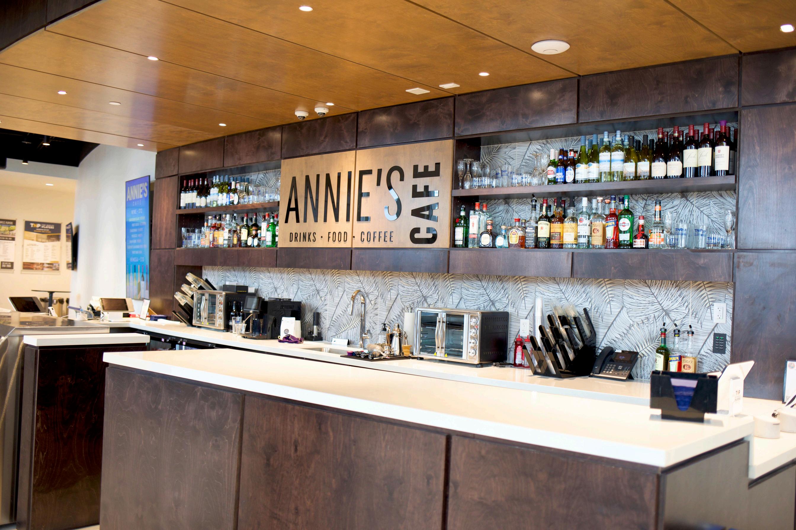 In the lobby, the concession stand is where I can buy snacks and drinks to have during the show.