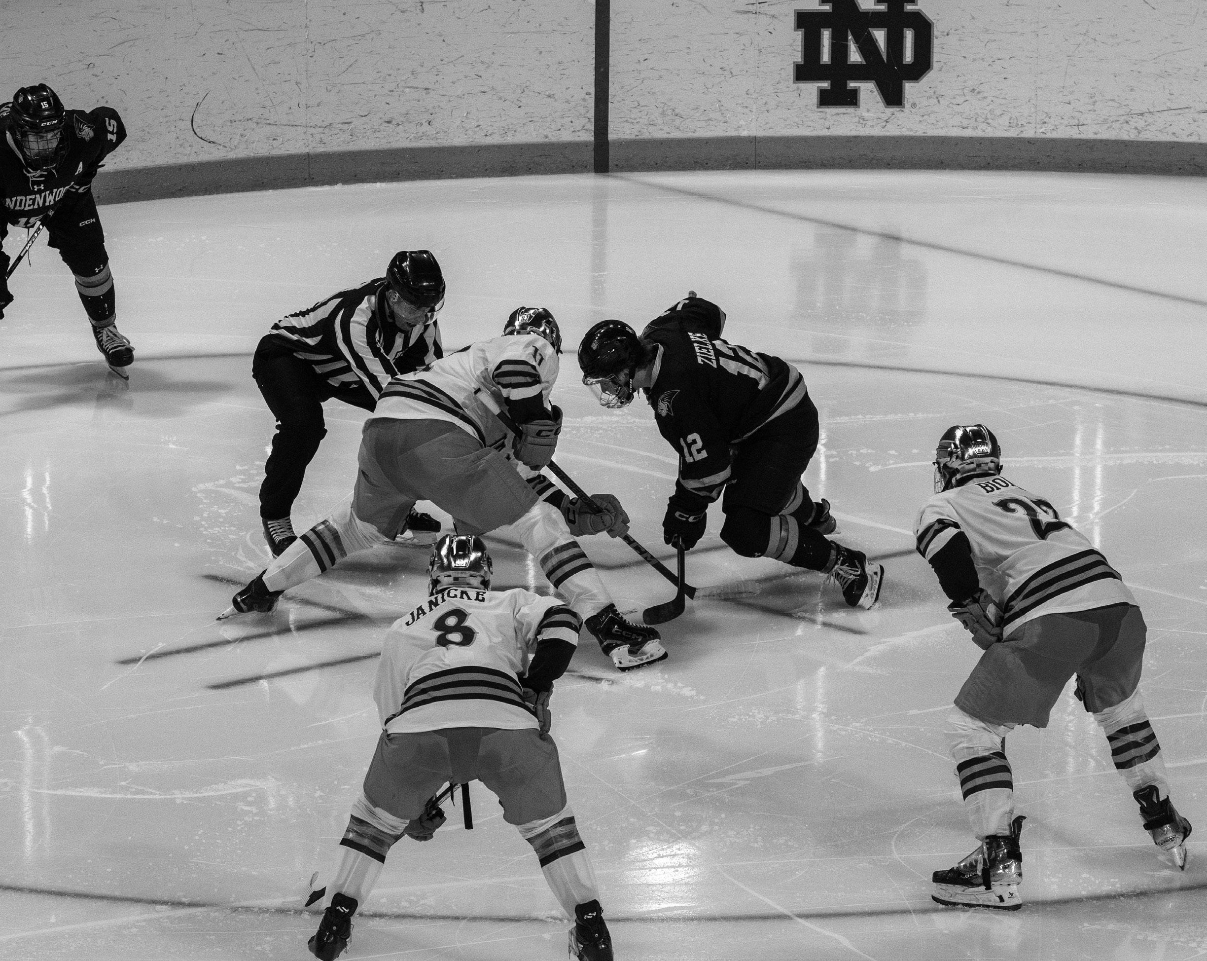 Notre Dame dictated play for most of the second period, but the Lions refused to go away. They finally got on the board themselves when sophomore forward Jake Southgate beat Kempf with a wrist shot from the faceoff circle. The goal cut Notre Dame’s lead to one entering the final period.
