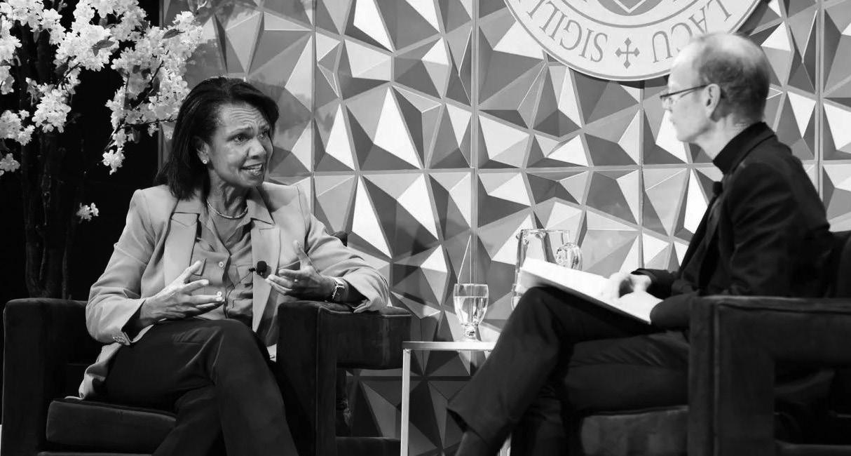 On Friday, former secretary of state Condoleezza Rice spoke with University President Fr. Robert Dowd, with much of the conversation revolving around a recent article Rice penned in Foreign Affairs about “The Perils of Isolationism.”