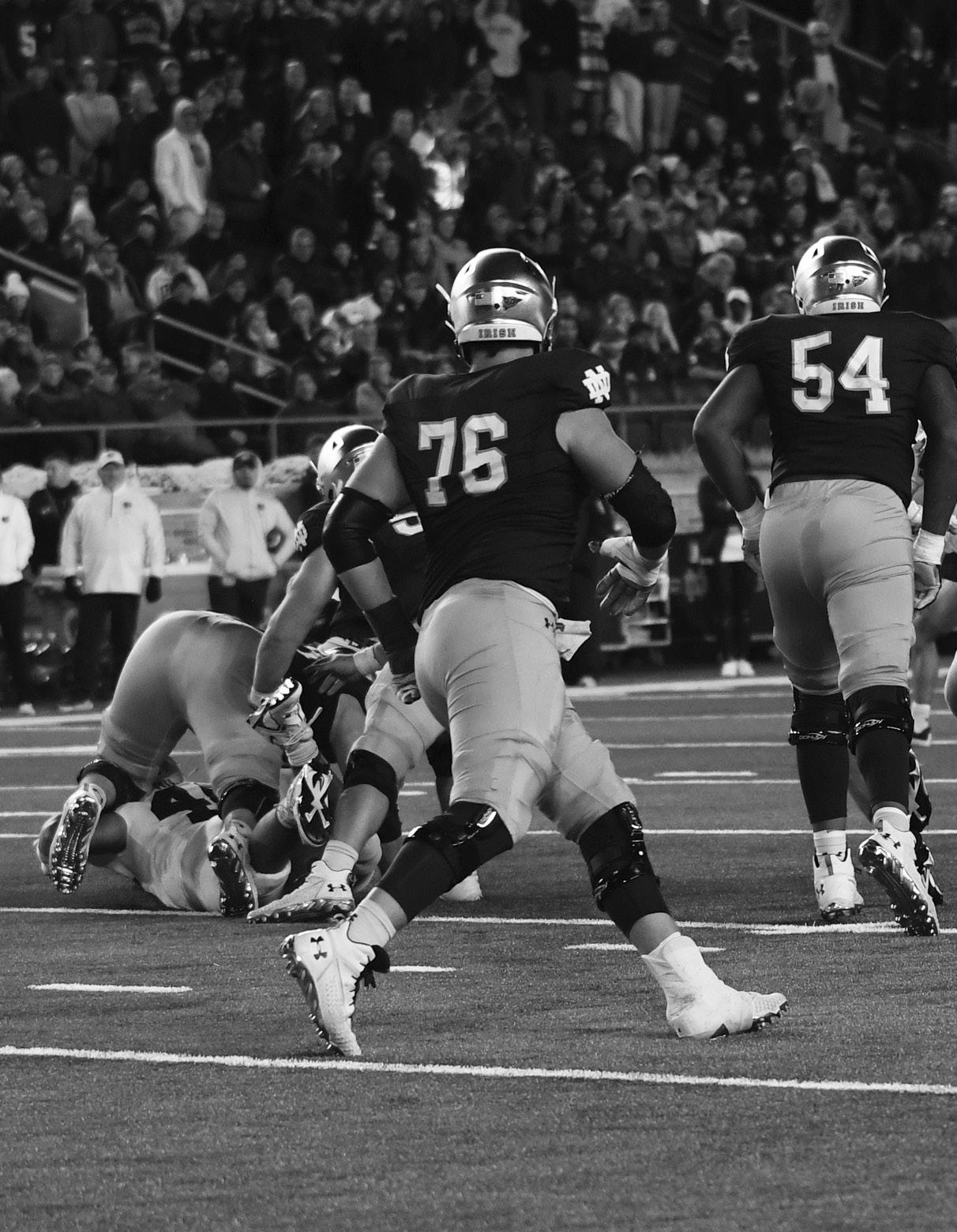 Last season, left tackle Joe Alt was thrown into action as a fresh man after the Irish offensive line was gashed by injuries. despite his inexperience, Alt played incred ibly well, earning a freshman AllAmerican accolade. This season, the sophomore has continued to build on his freshman year success. he has built off last year’s progress to become one of the most domi nant left tackles in college football.