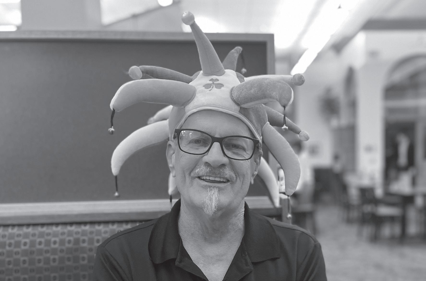 Lead Huddle Mart manager Tyrone Diment wears a jester’s hat in celebration of Halloween during his final shift before retirement. Diment worked at Huddle Mart for 11 years, and was beloved by students.