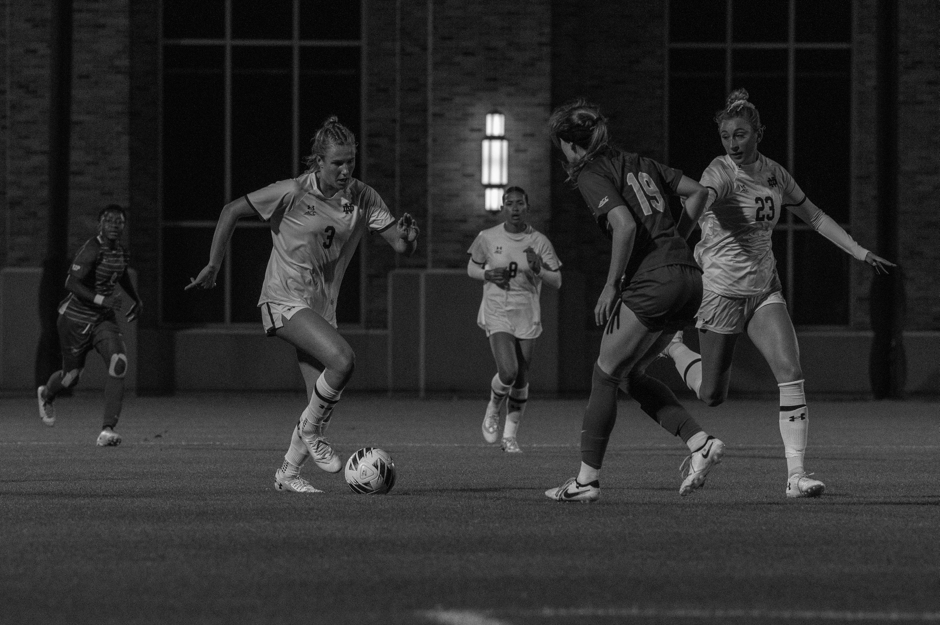 Prior to first touch, Notre Dame athletics and head coach Nate Norman celebrated Senior Night by recognizing midfielder Sophia Fisher and defender KJ Ronan, who have combined to record 122 appearances and eight goals over their four-year careers in South Bend.