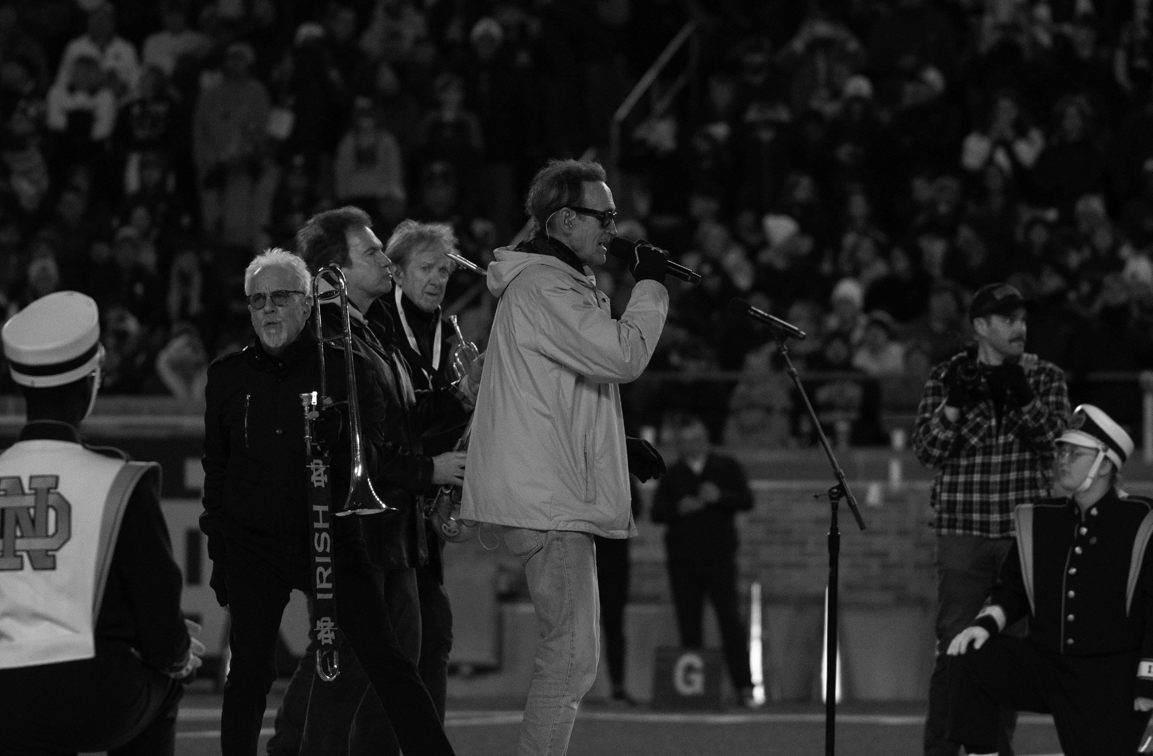 Observer The band Chicago performed a halftime show at Saturday’s football game against the University of Virginia. The Notre Dame marching band accompanied the popular group as it performed top hits including “25 or 6 to 4” and “Saturday in the Park.”
