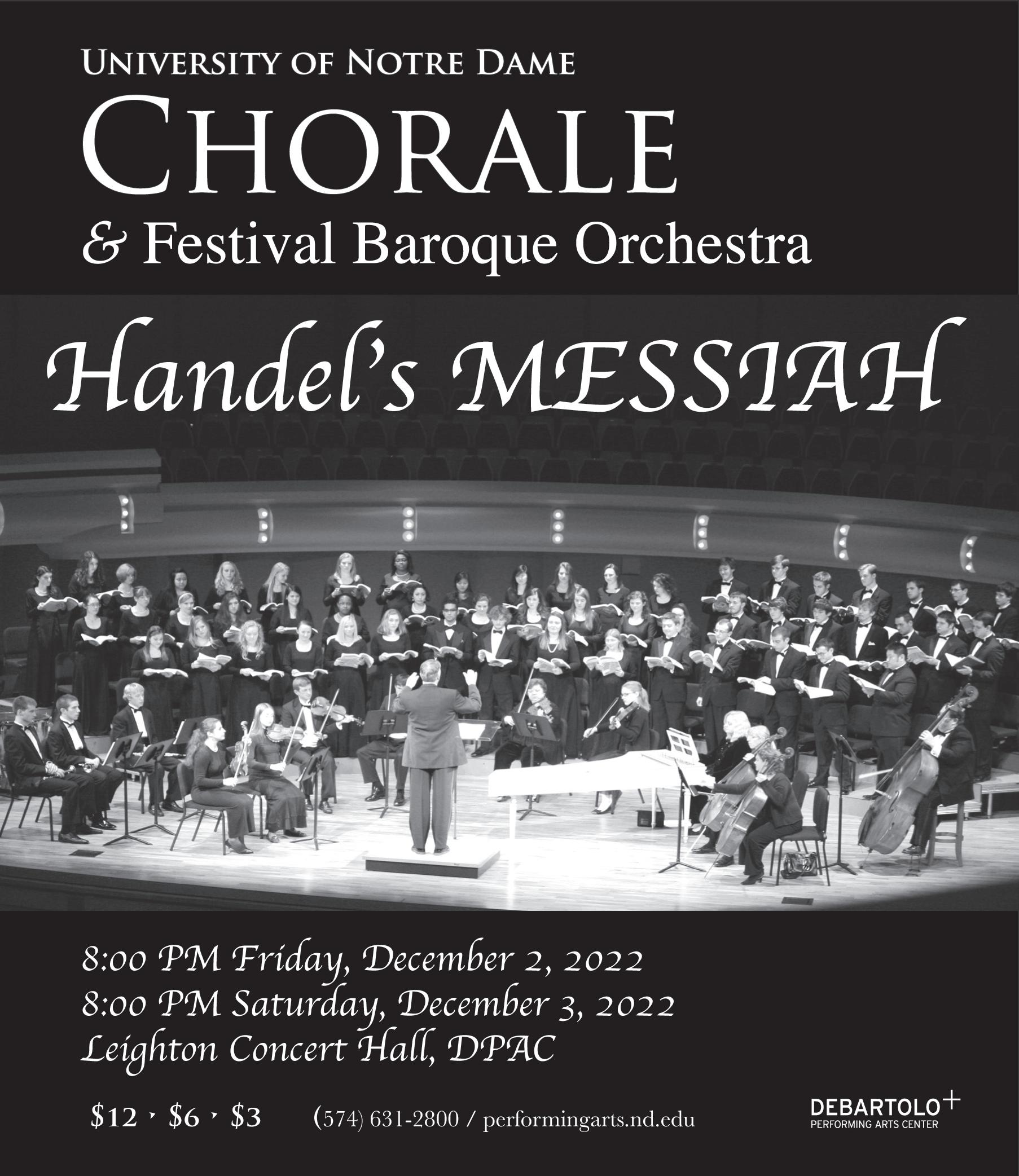 “Handel’s Messiah” Leighton Concert Hall 8 p.m. - 9:30 p.m. Student soloists are accompied by a festive Baroque orchestra.