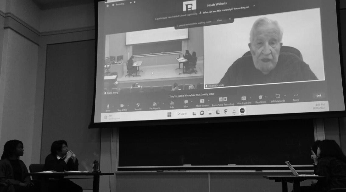 Members of SolidarityND gathered in Bond Hall for a discussion with Dr. Noam Chomsky who spoke to students over a Zoom call.