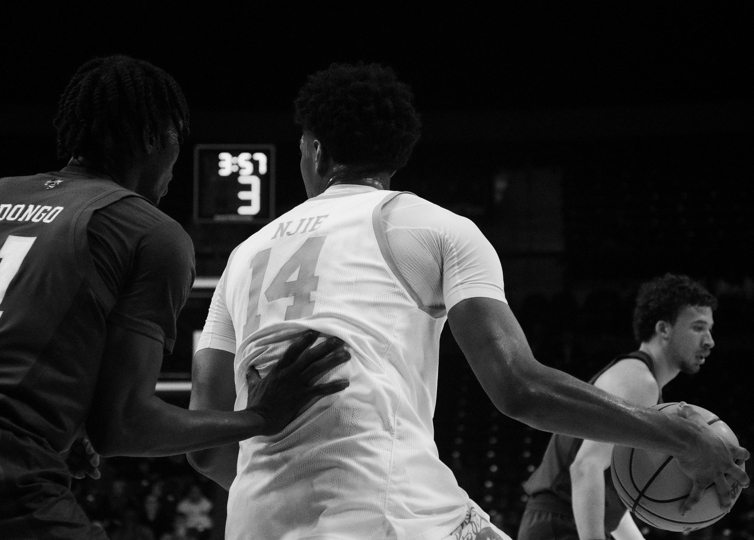 Beyond No. 3, graduate transfer forward Liatu King notched a double-double