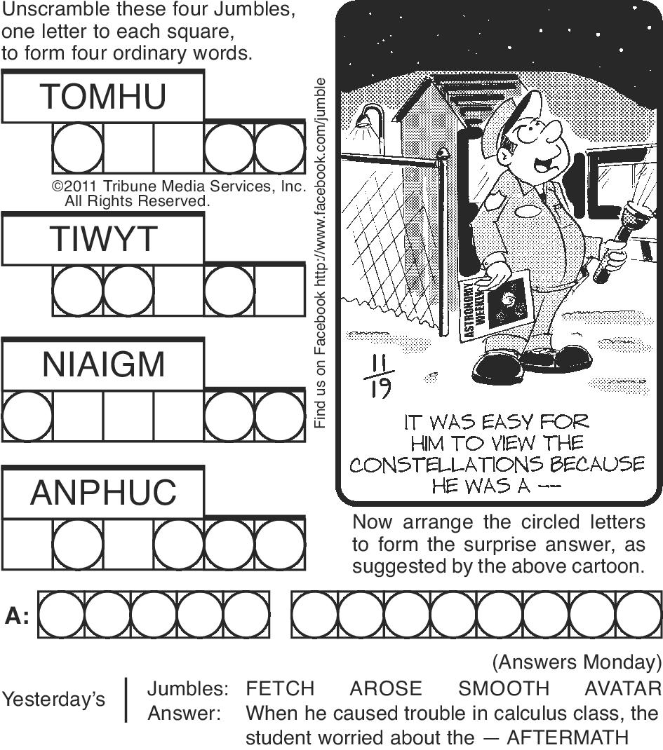 and more planning and budgeting to ensure you enjoy the ride to your destination of choice. It’s time to live life your way. Your numbers are 8, 17, 24, 28, 36, 41, 44. ARIES (March 21-April 19): Offer your services to those in need. Volunteering or getting involved in something uplifting will lead to new prospects and potential long-term gains. An unusual change or choice will offer more hope and unexpected returns. Put more time and effort into domestic improvements and a healthier lifestyle.