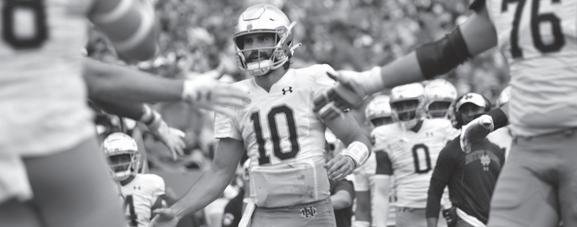 Last year, the Irish held an undisputed edge at the position with perennial All-American Michael Mayer leading the way. Sure enough, Mayer wound up accounting for half of Notre Dame’s receptions and nearly 20% of its receiving yards. Evans, sophomore Holden Staes and junior Davis Sherwood likely won’t have that type of impact on Saturday. But the Irish need them to play a key role. It doesn’t necessarily have to be catching passes. Whether it’s during upthe-pass blocking or showing off Mitch-A-Palooza in prime time, this group has the potential to make a difference.