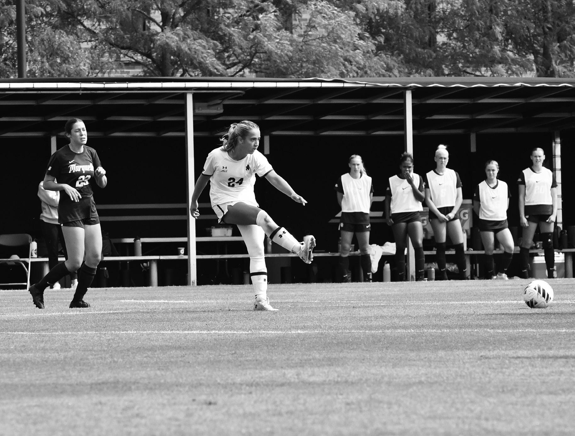 At about midway through the second half, momentum flipped firmly back in Notre Dame’s favor. The Irish generated a number of set-piece chances and finally cashed in when Roou won a reviewed penalty kick in the 88th minute. With the rare shot at backto-back hat tricks on the line, Roou stepped up to the spot and made no mistakes, tucking a shot comfortably inside the right post.