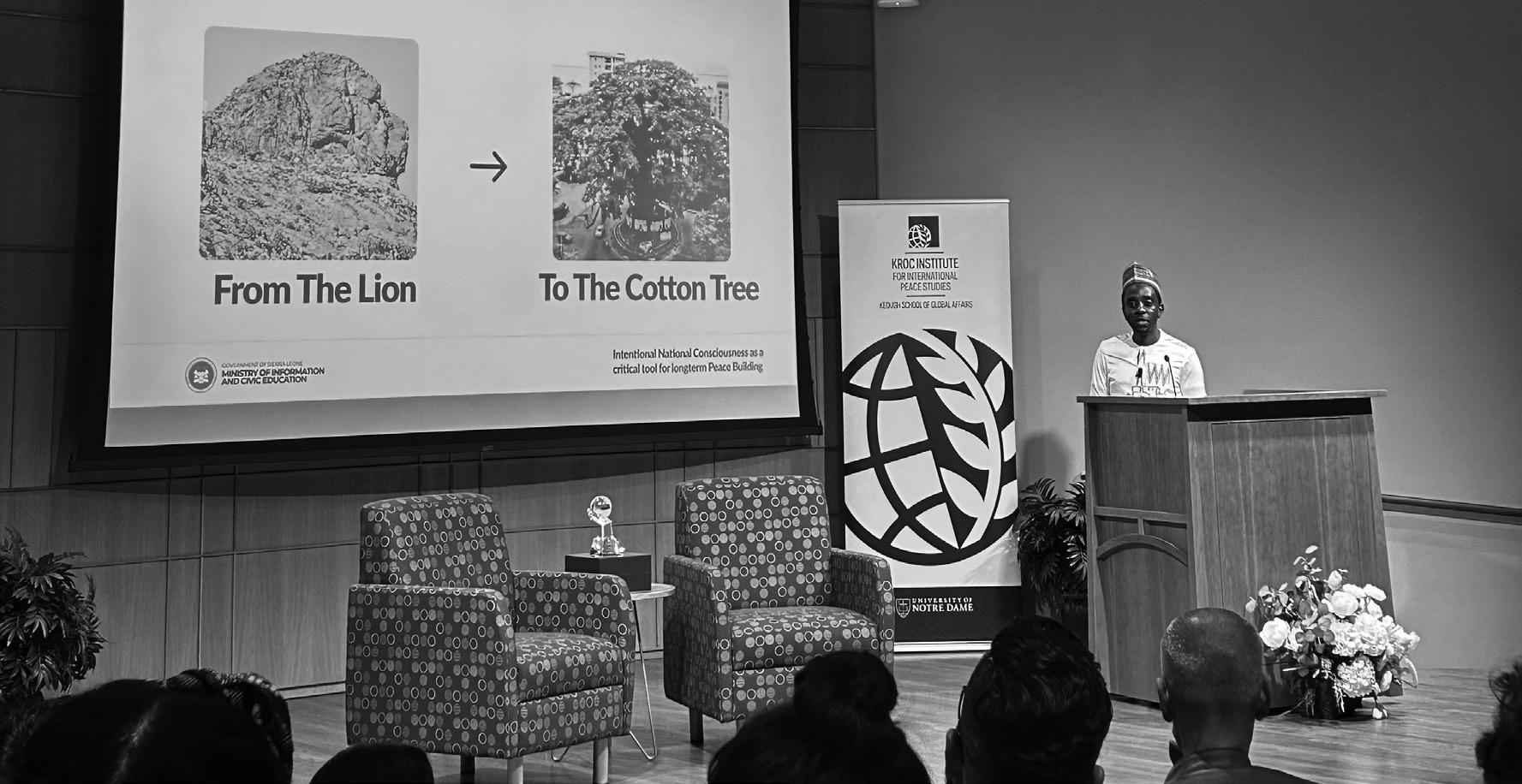 Chernor Bah, Sierra Leone’s minister of information and civic engagement, spoke after recieving the Kroc Institute’s celebratory Distinguished Alumni Award for working to cultivate peace globally.
