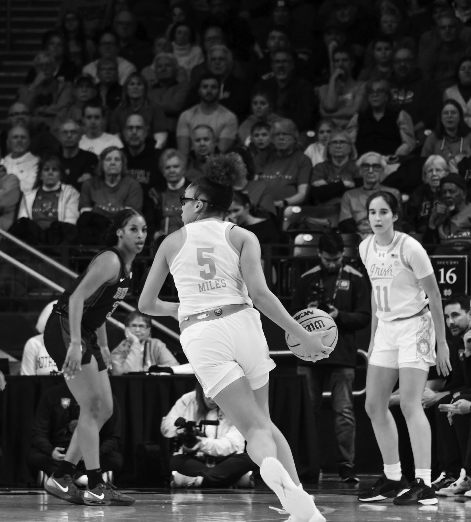 Despite the personnel change, Notre Dame had no problem staying with the Panthers early. The Irish, thanks to 21 combined firsthalf points from Burton and junior Tae Davis, never trailed by more than 5 in the opening 20 minutes and went into halftime in a 30-30 tie.