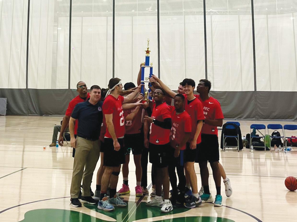 Washington University’s Army team lifts the men’s bracket trophy after beating Virginia Tech in the Flyin’ Irish Invitational Tournament.