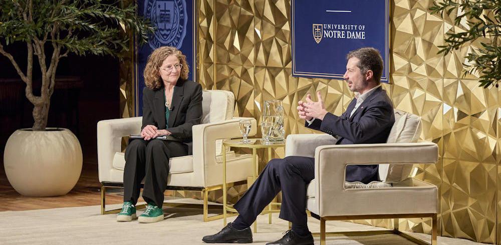 Former South Bend Mayor Pete Buttigieg returned to the city on Friday for a fireside chat at the DeBartolo Performing Arts Center titled “Leadership, Innovation, and the Next Generation.” Buttigieg was joined by Mary Gallagher, the Marilyn Keough dean of the Keough School of Global Affairs. The former U.S. Secretary of Transportation