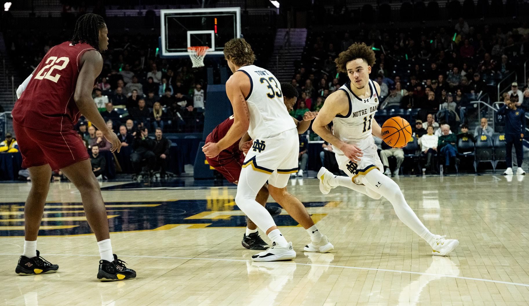 The latest chapter of the storied Holy War rivalry went Notre Dame’s way on Saturday night at Purcell Pavilion after a chaotic second-half comeback propelled the Irish to victory over the Boston College Eagles. The game was a crucial matchup for both teams, as the Irish looked to snap their five-game losing streak, post their second ACC win and overcome recent offensive struggles.