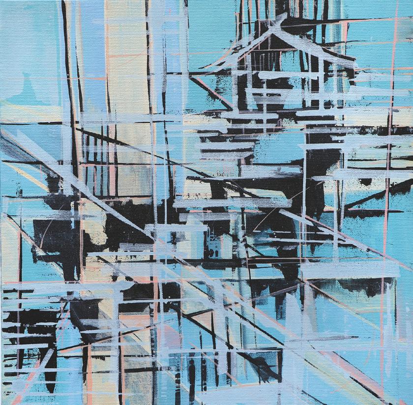 acrylic, charcoal, colored pencil, 30" x 30"