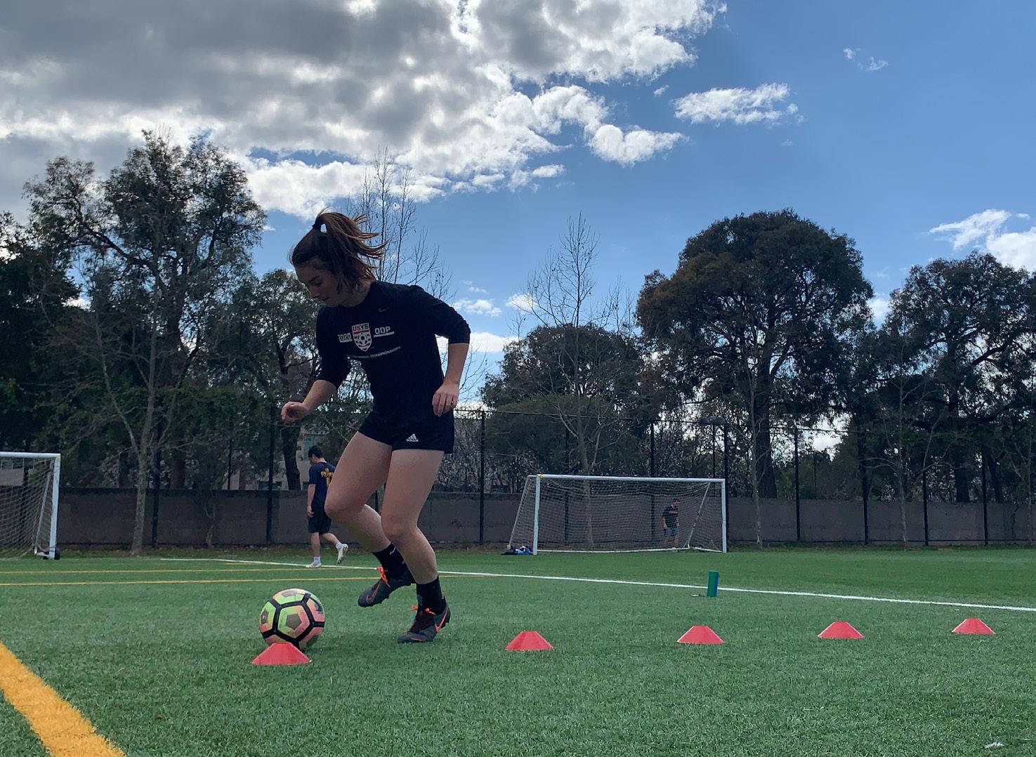 Espinosa trains at a soccer field during the shelter-in-place. Espinosa’s club soccer coach sends her team drills that they are required to complete. Photo courtesy of Carolina Espinosa.