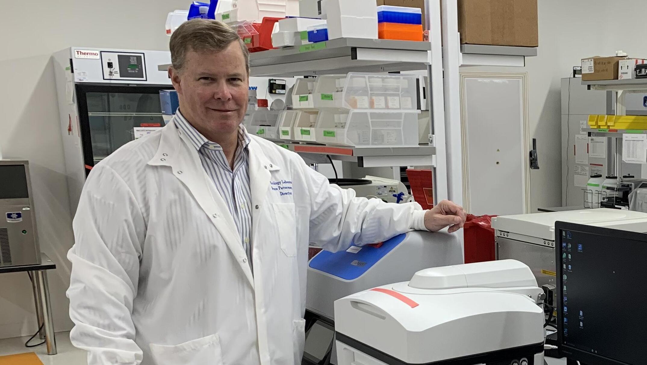 Patterson poses for a picture in his virology lab. Photo courtesy of Bruce Patterson.