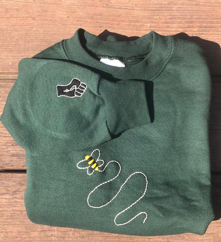 necks and sweatshirts from Amazon and then embroider a BLM fist, a symbol of Black Power and Black pride, on the wrist of the right sleeve. Israelski and McKenny also do custom orders. They made masks for the Menlo Black Student Union embroidered with the BLM fist. “We also partnered with our beach volleyball club Sandlegs. They were able to give us their old jackets, and we embroidered those as well,” Israelski said. The pair have been hand-delivering their products, taking safety precautions such as wearing masks