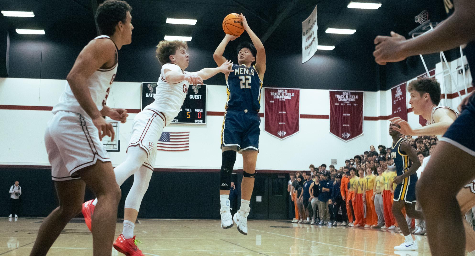 Zhao was selected to play on Menlo’s varsity team as a freshman, an experience that he says helped shape his growth as a player and a teammate. “I think it was really beneficial to be a freshman on varsity because although I didn’t play as much, practicing with the older guys and watching them play really helped me develop a good sense of what high school basketball was like,” Zhao said.
