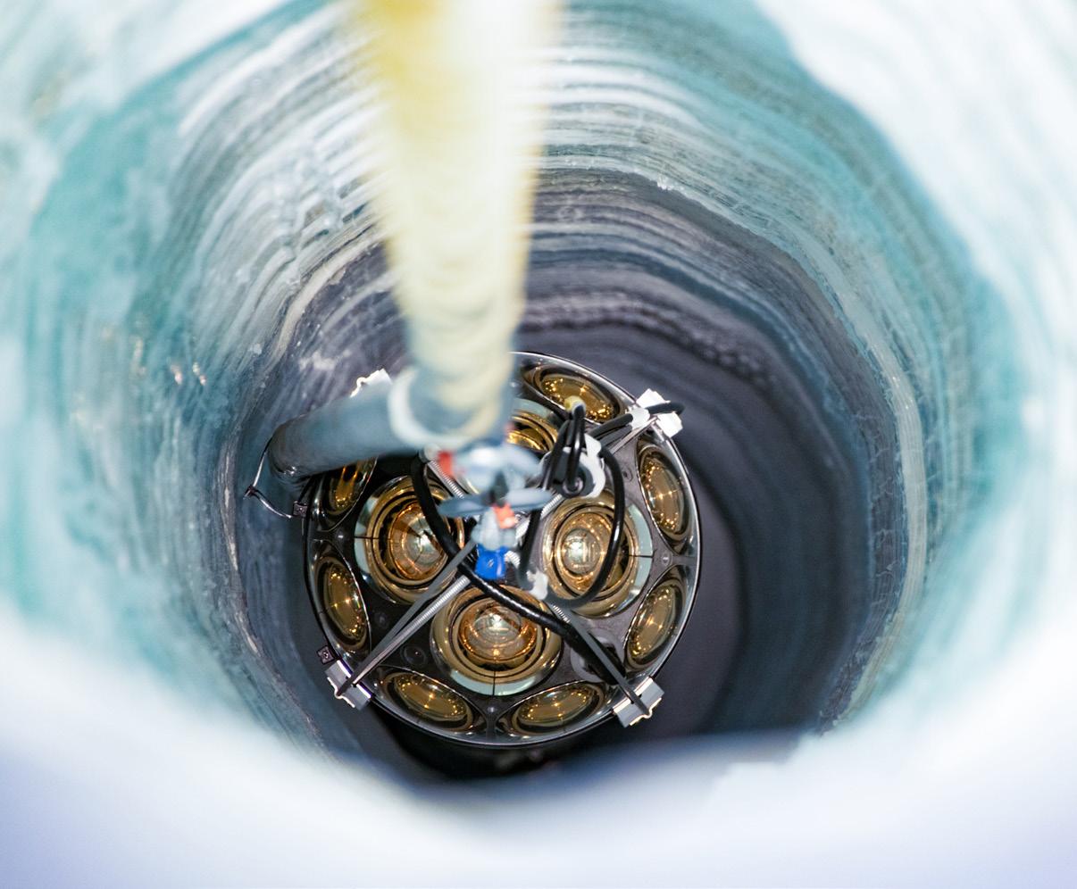 Deep within the ice, so dense its purity is unmatched by anything fabricated in a lab, thousands of electronic spheres are buried. Each is preserved and drilled in the ice, a monolith to scientific research. Their only goal: observe the thin blue zaps — cosmic neutrinos — of our universe.
