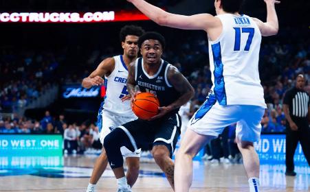 trailed 38-36 going into the half. Out of the locker room, Creighton sank three more 3-pointers, all from Swartz. Georgetown kept pace, but Creighton held onto a 5148 lead at the under-16 timeout. Although he started quietly, with 9:47 left, Lewis came to life, stealing the ball and tearing down the court before getting his pass back from sophomore forward Jayden Fort and cashing a three to return the lead to Georgetown at 59-58.