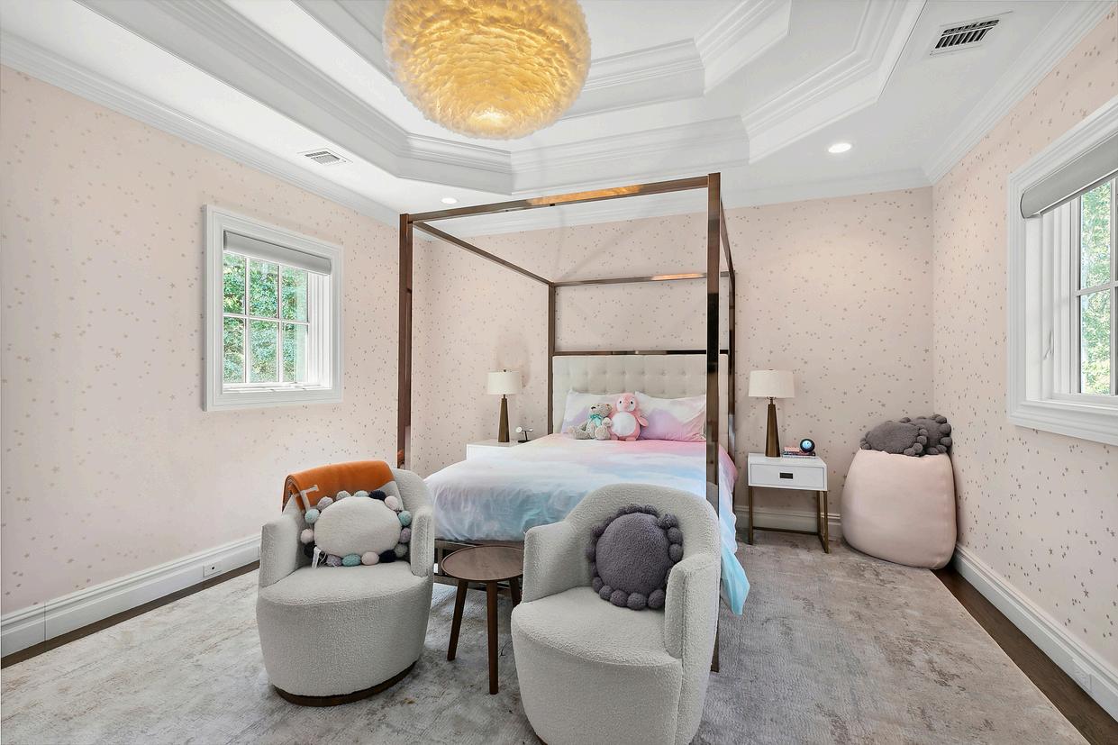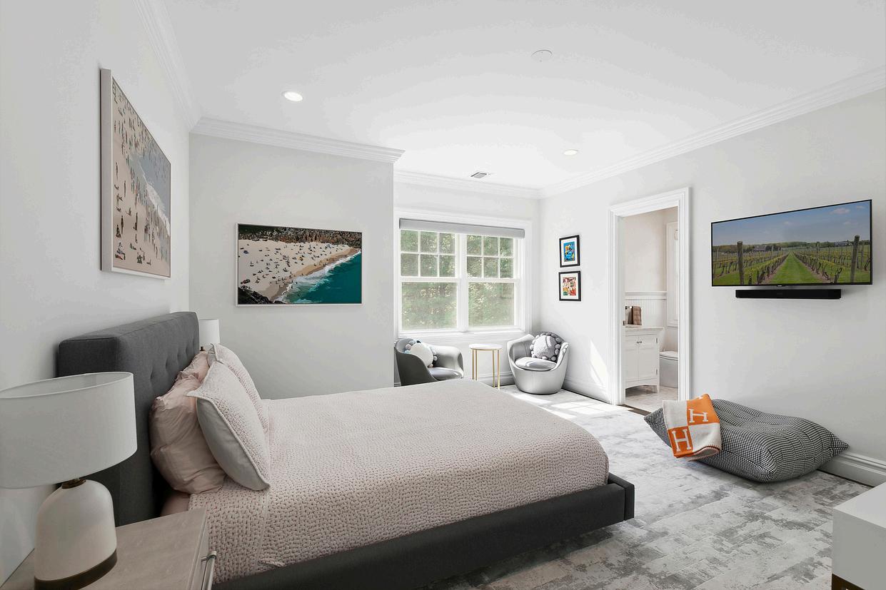 Every corner of this home is bathed in natural light, with soaring ceilings on all three levels creating an atmosphere of spaciousness and serenity. The primary suite is a true retreat, featuring a doubledoor entry, a sunlit walk-in dressing room with bespoke closets, and a spa-like bathroom with a deep soaking tub, steam shower, radiant heated floors, and double vanities The junior primary suite and five additional bedrooms ensure comfort and privacy for all guests