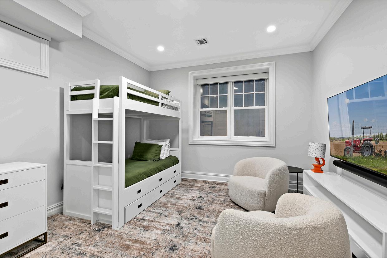 The lower level elevates the entertainment experience with a fully-equipped home theater, two additional bedrooms, a full bath, and versatile bonus spaces Practicality meets luxury with a radiant-heated mudroom, an oversized two-bay garage, and a thoughtfully designed laundry room all seamlessly connecting to the backyard oasis.