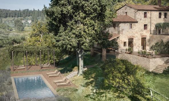 Theestateincludeselevenfarmhouses,each one differing in size and characteristics Each property will be sold with several hectares of farmland and comes with an approved renovation project following specificeco-sustainabilityrequirements.