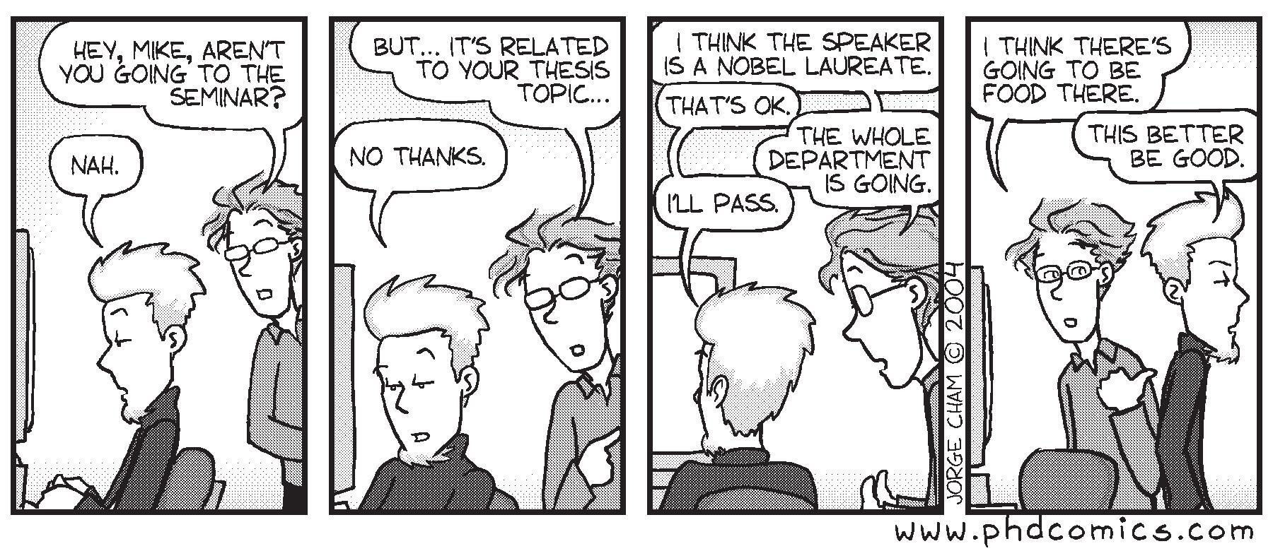There will always be things to do, places to go, and people to see, so plan your weekends and weeknights wisely. You’ll need some time for homework, believe it or not, but you’ll also need to get out and have fun. The problem we students run into is finding room for sleeping and eating. Social life, academic life, and physical life make up the college version of the Bermuda Triangle, and if those three portions of your life aren’t balanced, you won’t be. So be prepared to say no to some fun events and yes to some studying and/or sleeping, and vice versa. On occasion, your grades will thank you for it.