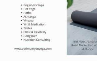 The timetable will stay much the same, with a few additions, allowing for a seamless change of hands and Optimum You members will now also have access to Harry’s hot yoga classes at the studio at ompass oint off orthampton Road. www.optimumyouyoga.com