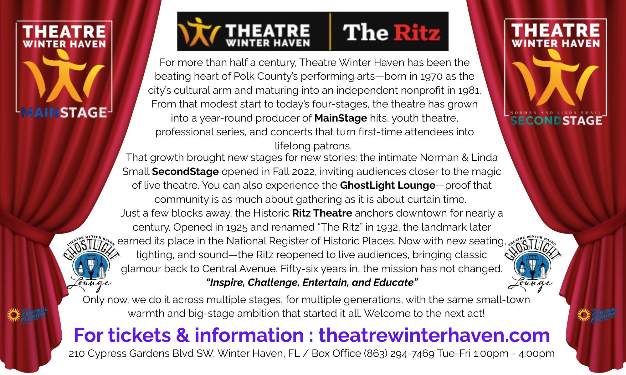 The Historic Ritz Theatre (863) 937-1414 www.theatrewinterhaven.com