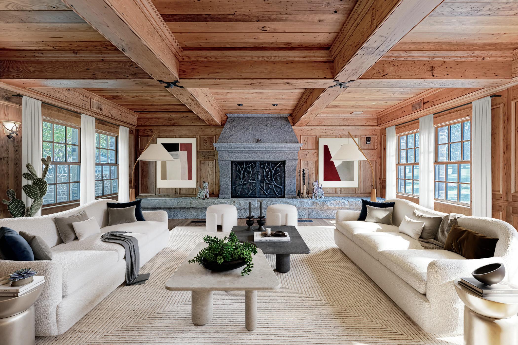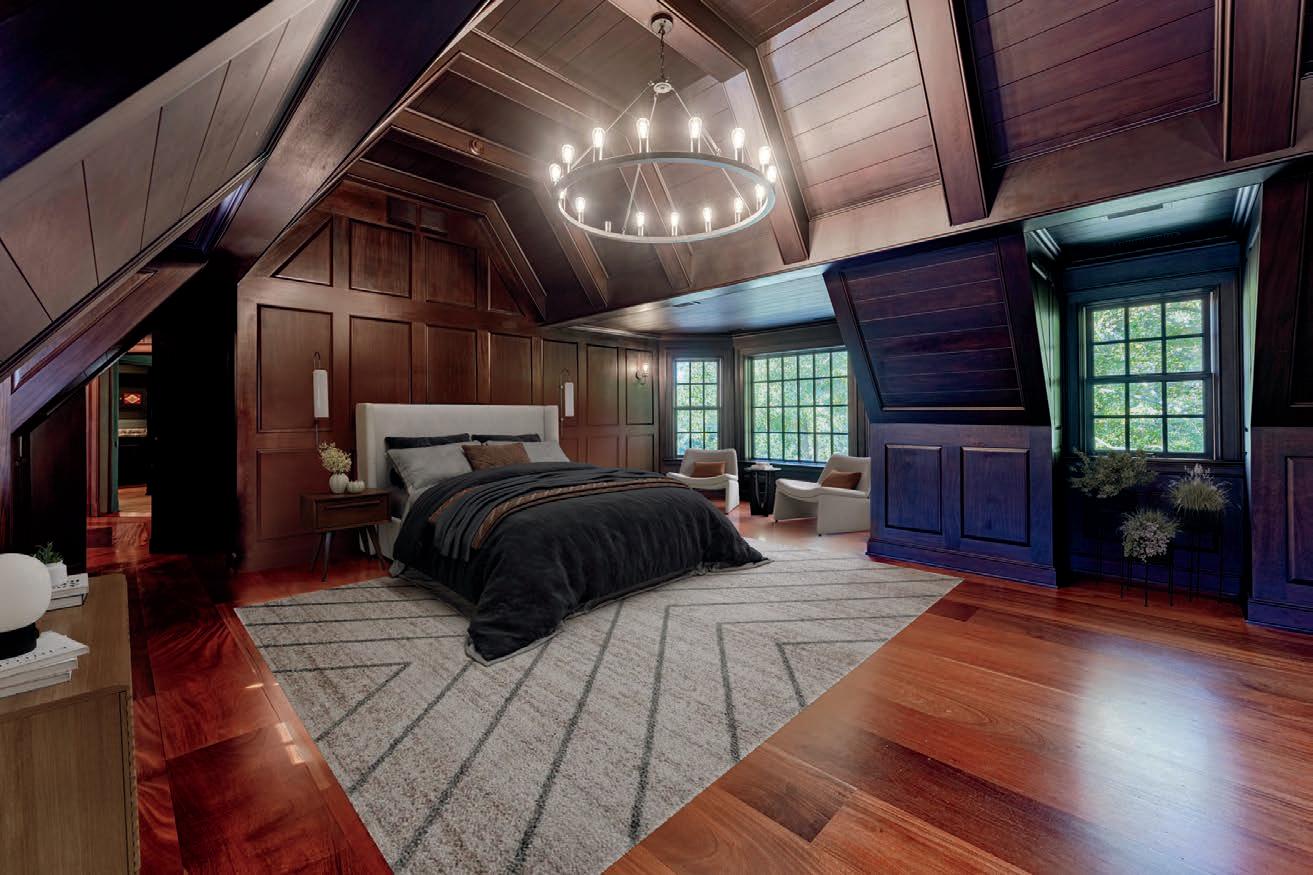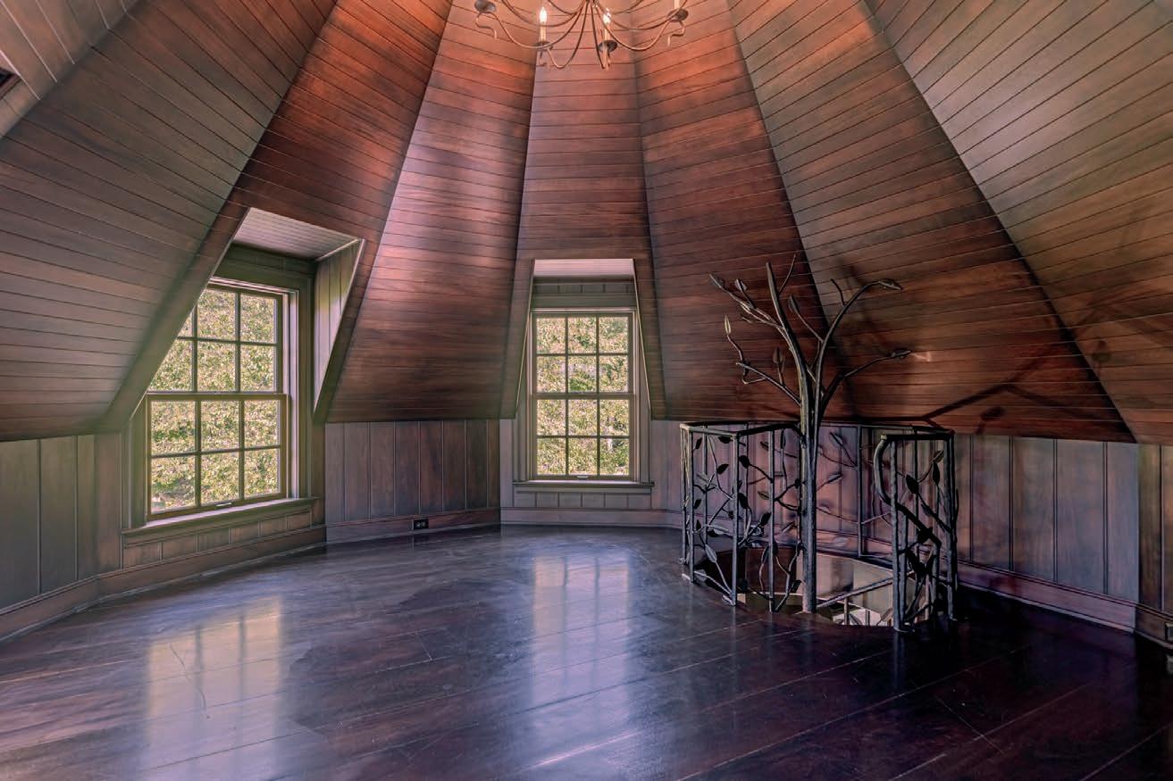 Beautifullysetbackfromtheroadbyagateddrive,thefrontentranceis evocativeofaromanticfairytale.Acobblestonepavedportecochereand motorcourtwrapthepropertyandprovidemultiplepointsofentryinto themainresidence.Thefrontdoorbeckonswithstainedglassaccent windowsandopenstothedramaticgreatroomandkitchen.Twostone fireplacesandlargewindowsframebothspaces.Theentertainingwing includesaspectacularvaultedgameroomwhichopenstothetwo-lane bowlingalleyandloungewithafullkitchen.