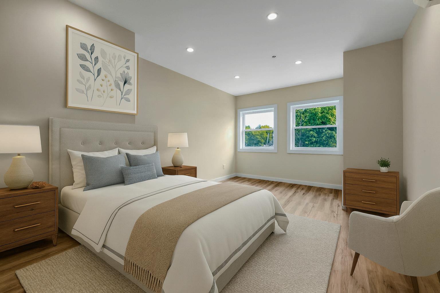 Upstairsaretwo1-bedroomapartmentsbuiltin2025,eachwithductlessheatingandcooling,afull bathroom,andawasher/dryer.Thebuildingincludesabrand-newfiresprinklersystemonalllevels.The basementhousesmechanicalequipment,awalk-inbox,andstorage.Accessibleparkingisavailable behindthebuilding.