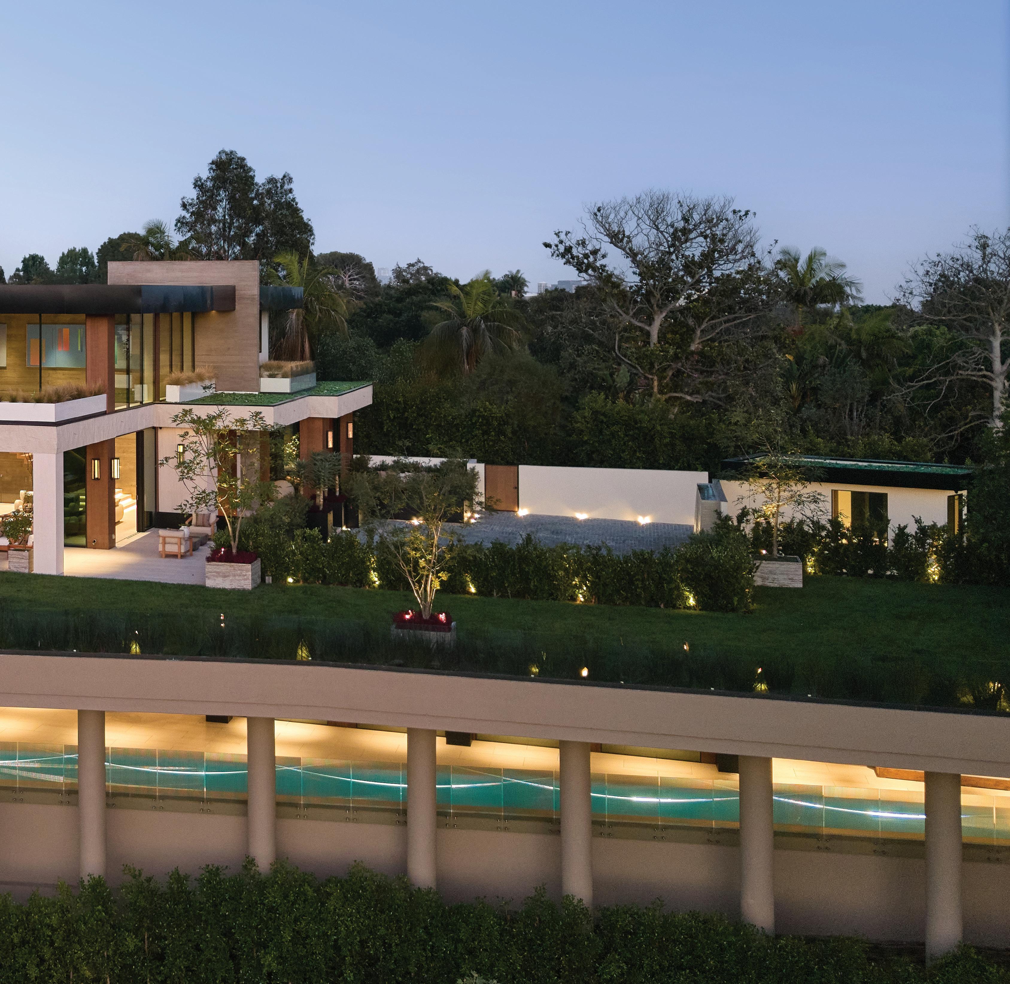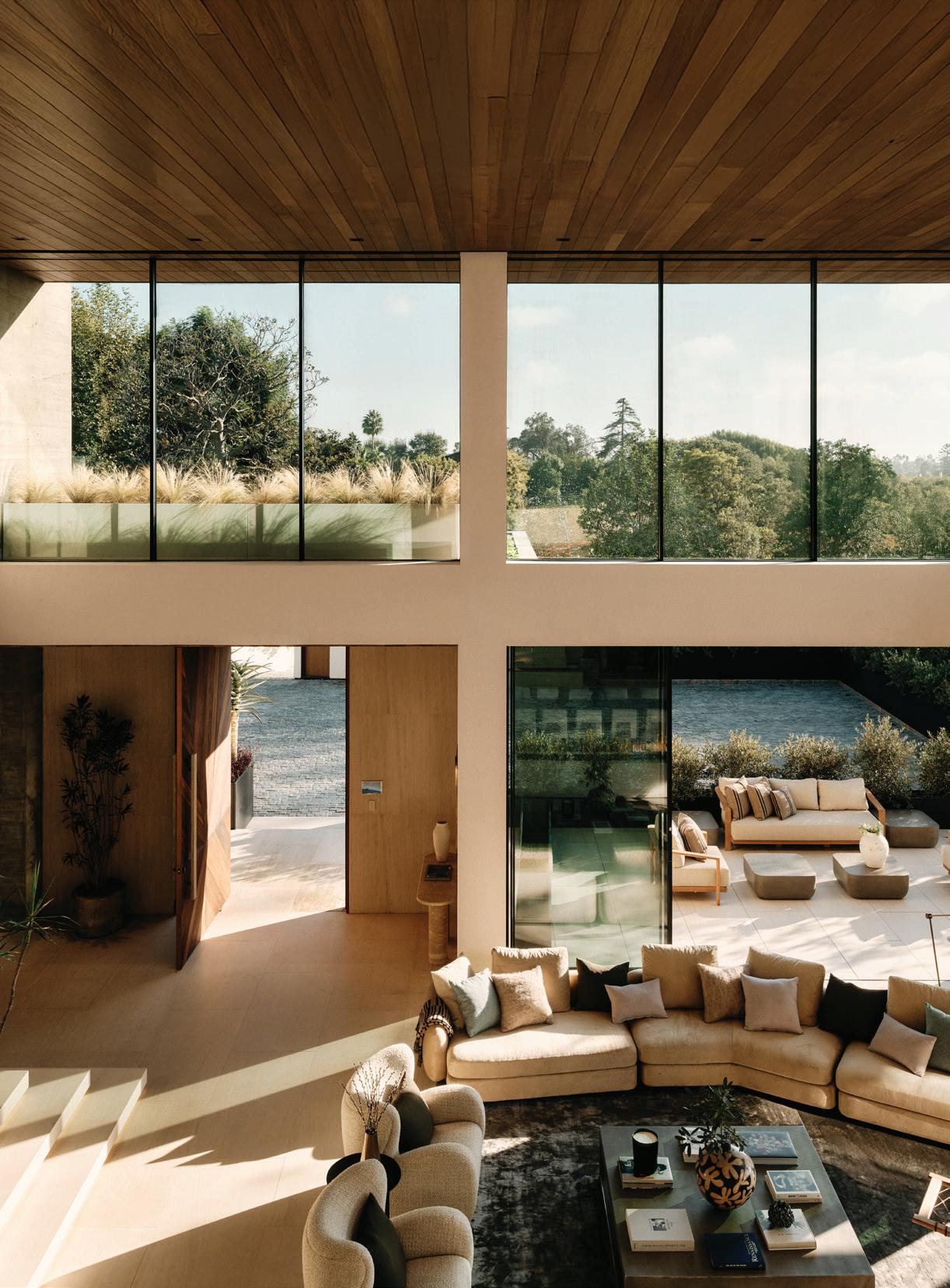 Past a secured, gated entry, find limestone steps that ascend to the estate’s grand, double-height door, which opens to reveal light-filled formal living and dining rooms, separated by a limestone-wrapped fireplace. Floor-toceiling glass walls line this level, framing treetop and hillside views, and opening to outdoor spaces that offer pictureperfect opportunities for entertaining.