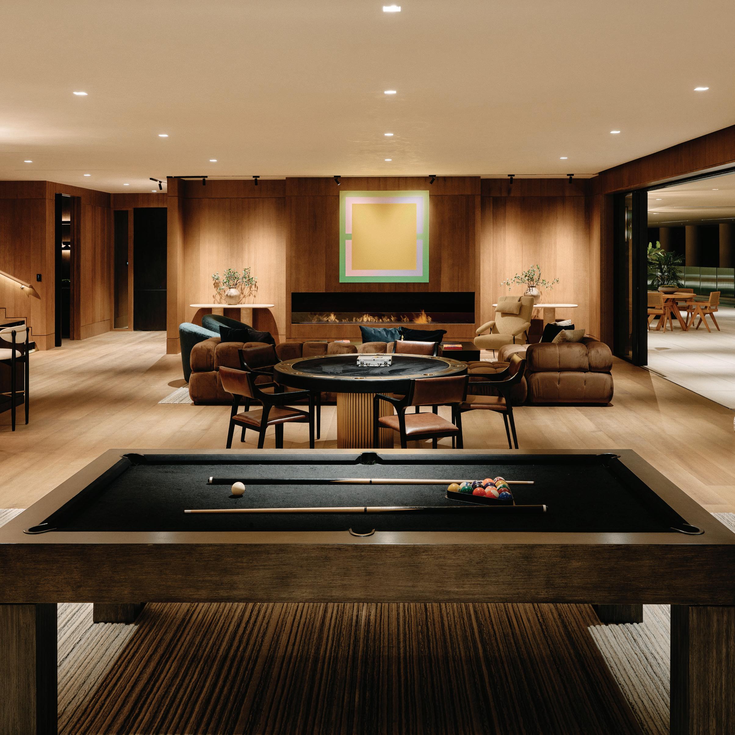 The space presents an indoor-outdoor gym with space for a weightlifting room, Pilates studio, and an open-air cardio area. Just outside is a 100-foot, two-lane lap pool with lounge chairs, an 8-foot-deep cold plunge that could fit up to 10 people and an infrared sauna with space for yoga. The designated spa boasts natural limestone and heated floors, steam room with shower, as well as a double-sink hair salon.