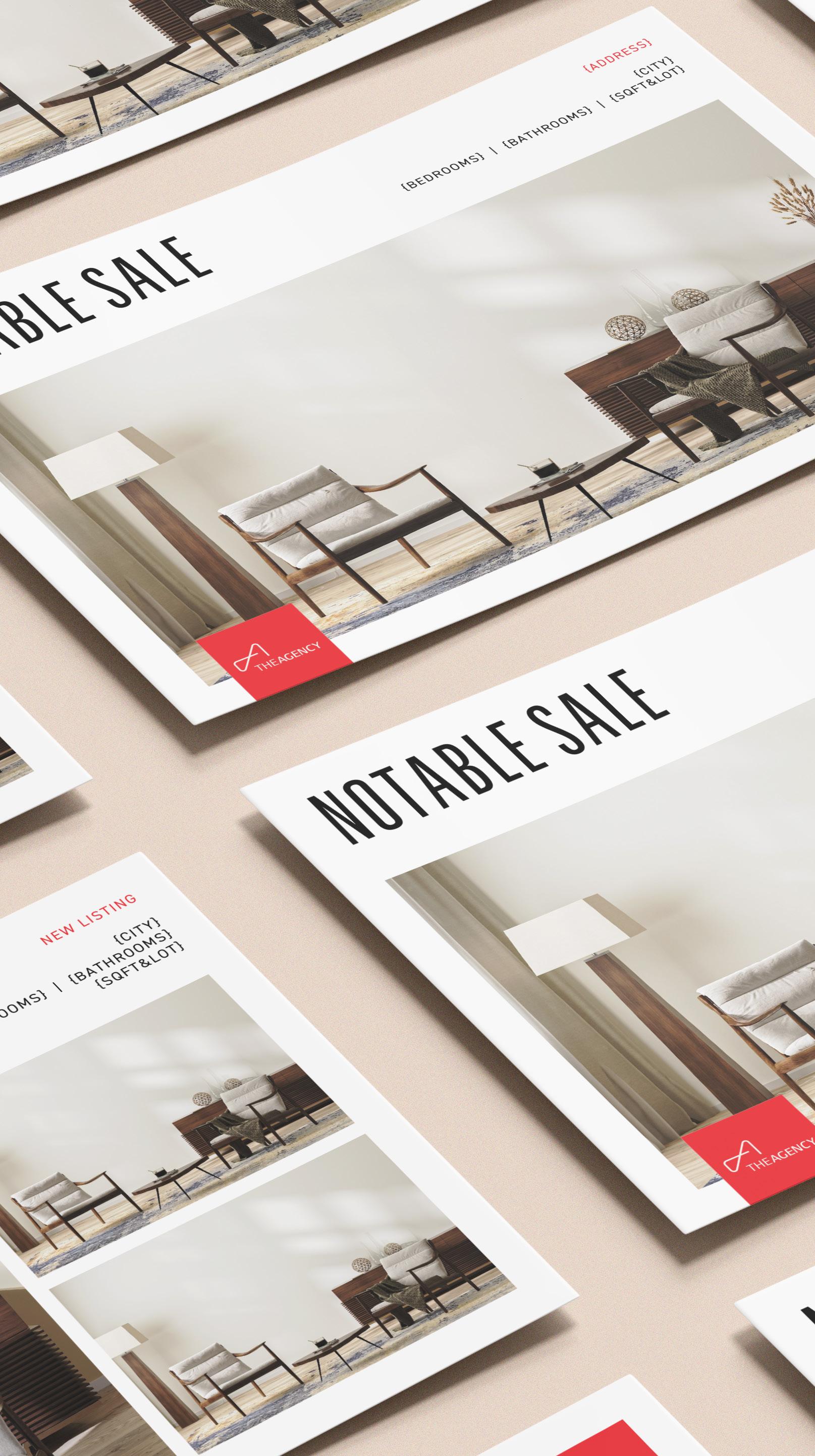 T h e A g e n c y ’ s f u l l s u i t e o f p r i n t m a t e r i a l s a n d d i g i t a l a s s e t s a l l o w s y o u r p r o p e r t y ’ s i n d i v i d u a l c h a r a c t e r a n d p e r s o n a l i t y t o s h i n e . W e c r e a t e t a n g i b l e t o u c h p o i n t s t h a t
