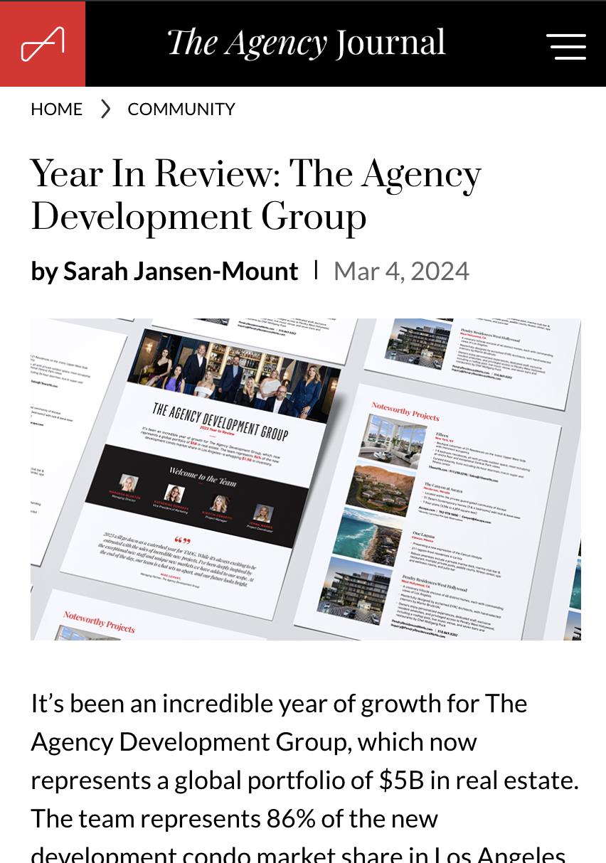 • Mauricio to share property to 200+ Agency Beverly Hills agent in weekly Sales Meeting and on The Agency’s internal channels reaching nearly 3000 agents world wide