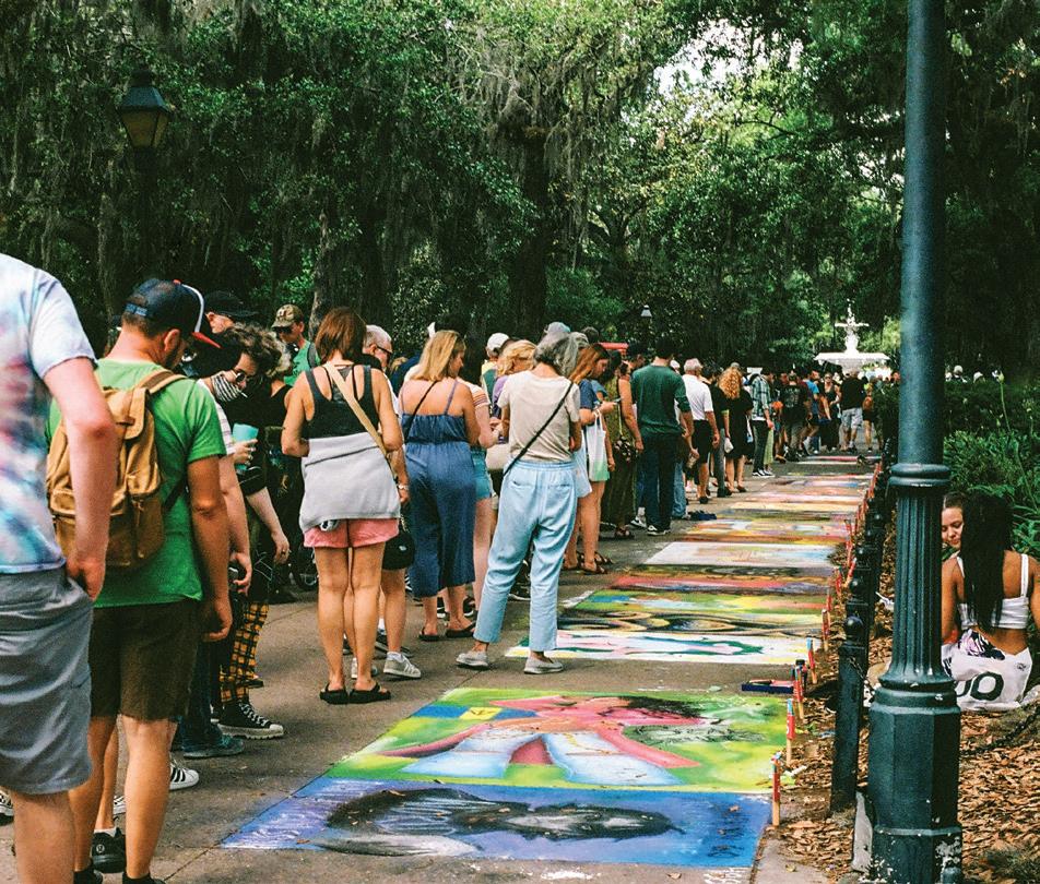 Forsyth Park transforms into an open-air gallery of chalk art masterpieces, as SCAD students and alumni compete amidst live music and food.