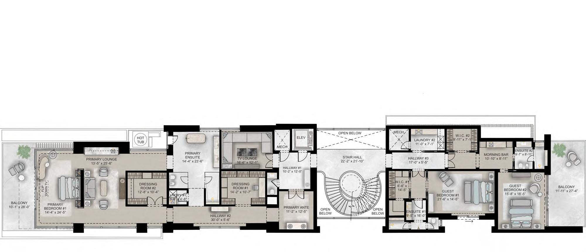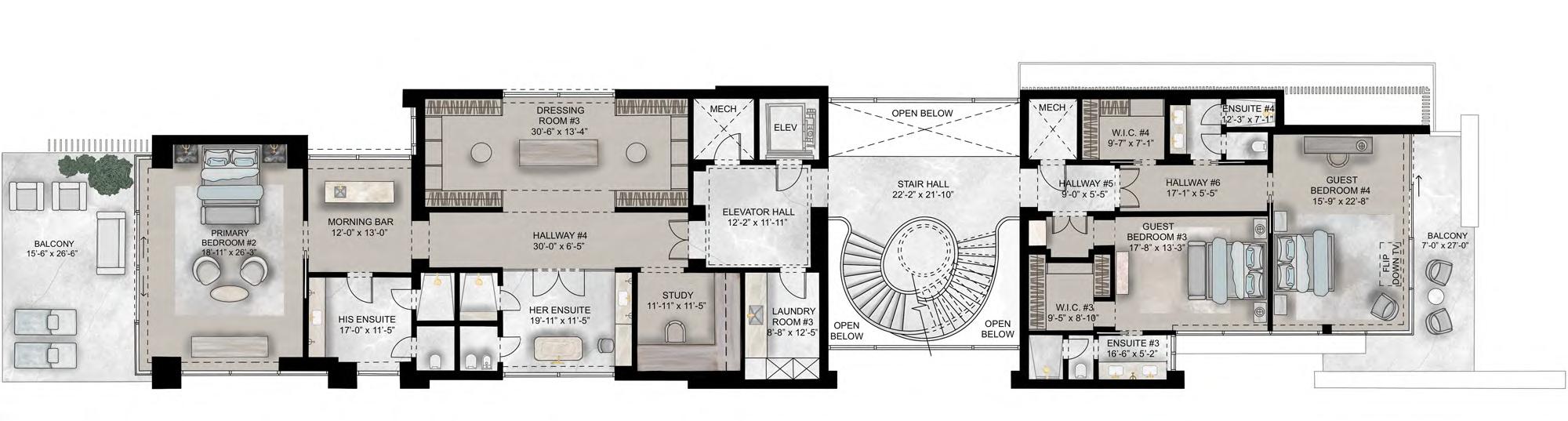 A private retreat of serene opulence, framed by floor-to-ceiling views of the Caribbean’s open waters. Two principal bedrooms complete with ensuites and dressing rooms allows guests to visit in style.