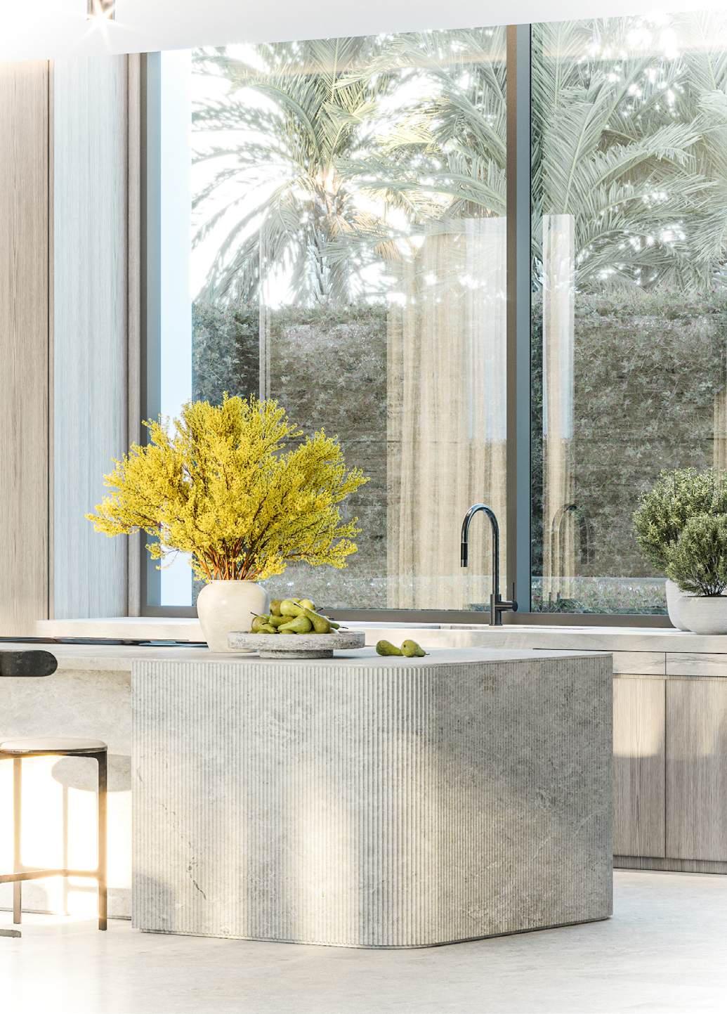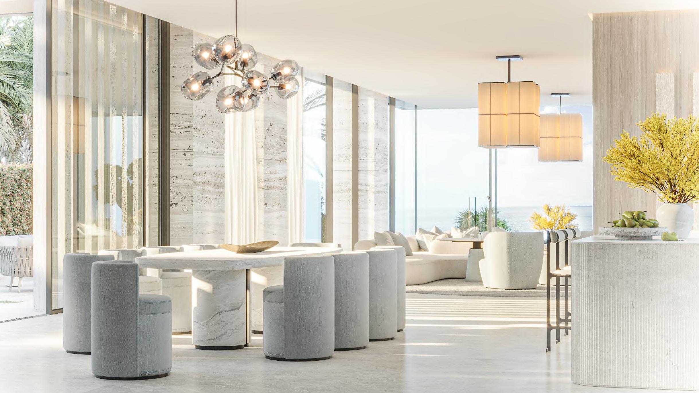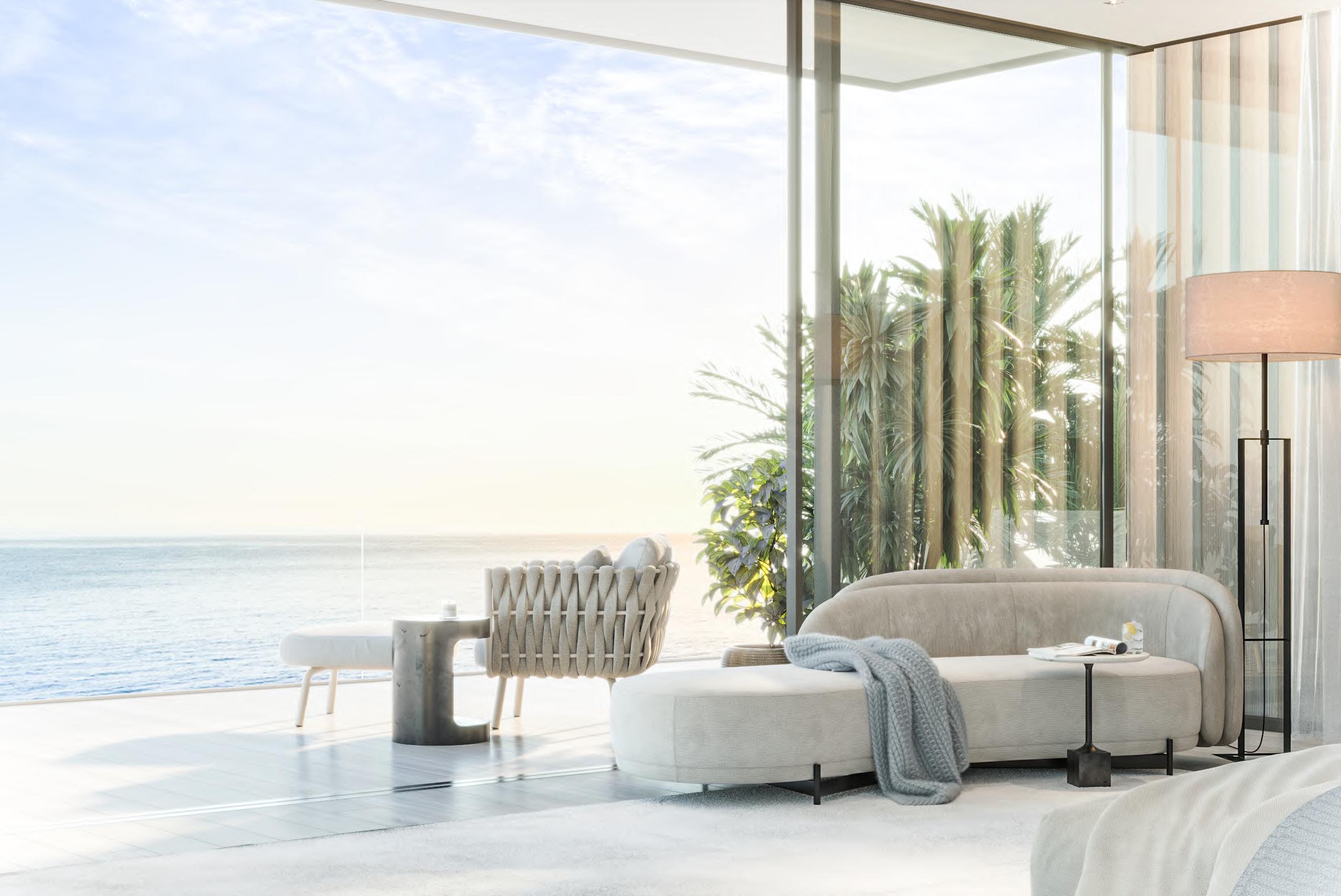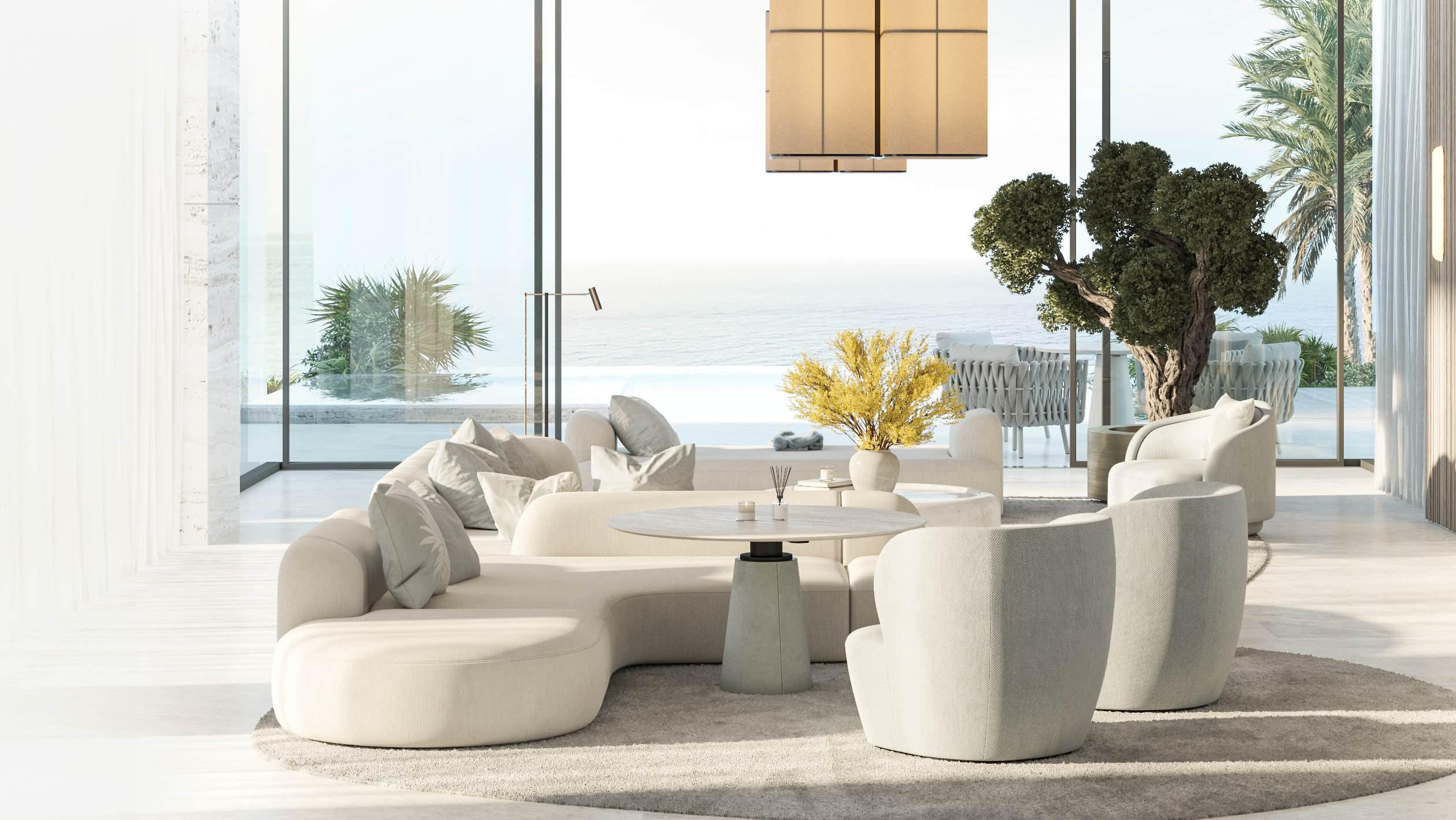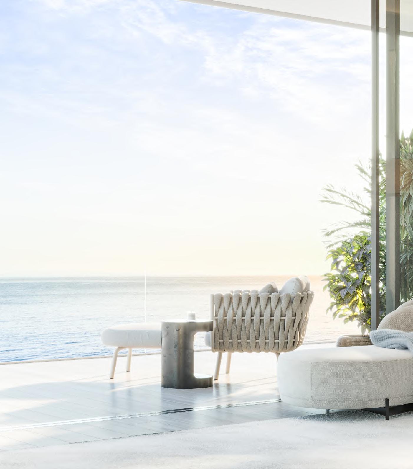 An expansive sanctuary of refinement, where panoramic ocean views combine with timeless sophistication. Expansive floor-to-ceiling windows fill the space with natural light, seamlessly blending the elegant interiors with the beautiful outdoors.
