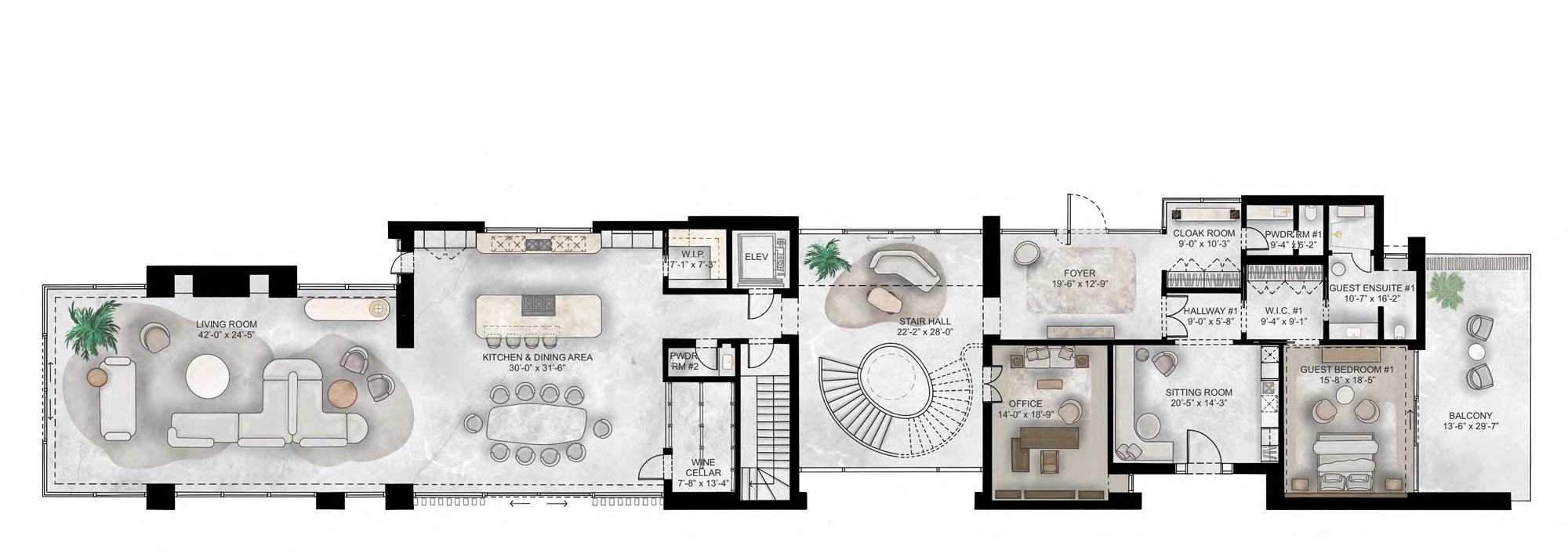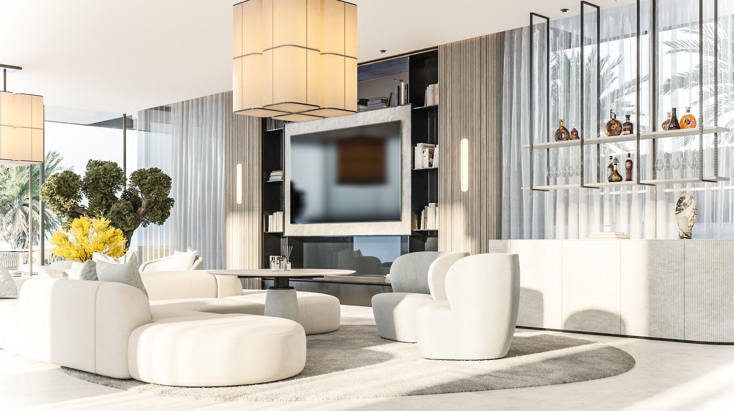Designed for both serene relaxation and sophisticated entertaining, this extraordinary living room features thoughtfully arranged lounge areas that invite you to unwind. A true retreat for the discerning buyer, it embodies the perfect balance of luxury, comfort, and unparalleled style.