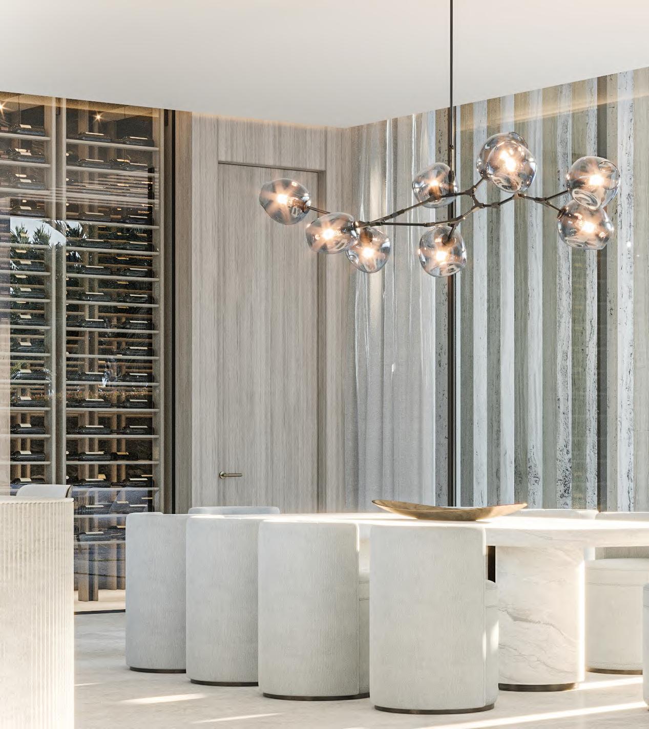 With a space that exudes sophistication, enjoy a seamless setting for hosting elegant gatherings, amidst the perfect backdrop to discover personal connection. This expansive, multi-functional room opens up to the outdoor terrace, allowing the flow and energy of life to travel seamlessly to the outdoors, while the custom wine cellar is set to showcase your collection of beloved vintages.