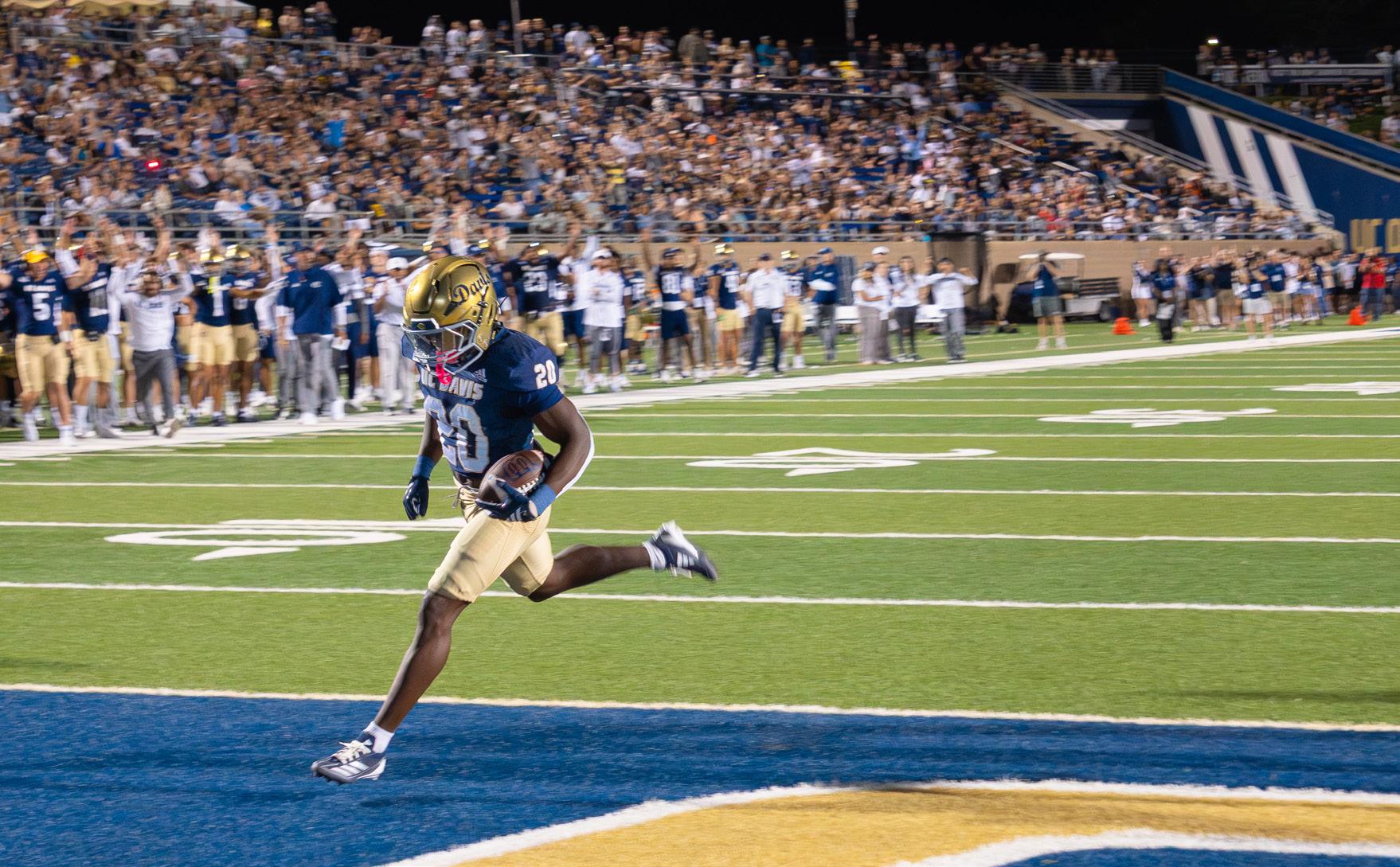 After retaking the lead, UC Davis Head Coach Tim Plough’s aggressive gameplanning continued as the squad executed a two-point conversion to take their lead to eight. Before the half concluded, SUU scored once more, but after a failed twopoint conversion attempt, remained behind at 22-20.