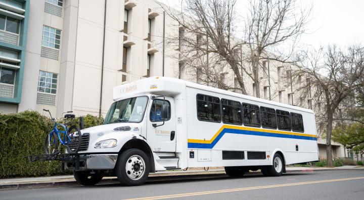 An announcement by UC Davis Fleet Services explained that the service was regularly operating below capacity and running at a nancial de cit. $e cost of maintenance and fuel for the buses, combined with a post-pandemic decline in use, were listed as main causes of these conditions.