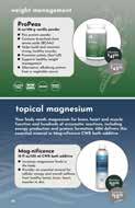 weight management ProPeas 16 oz/456 g vanilla powder Pea protein powder Contains branched-chain amino acids (BCAAs) Helps build and maintain strong, healthy muscles Promotes satiety (feel full) Supports healthy weight management Alternative, alkalizing protein from a vegetable source Member $4100 Customer $4350 Your body needs magnesium for brain, heart and muscle function and hundreds of enzymatic reactions, including energy production and protein formation. AIM delivers this essential mineral in Mag-nificence CWR bath additive. topical magnesium Member $1100 Customer $1250 SPORT APPROVED GLUTEN FREE NON GMO VEGAN 20 Mag-nificence 12 fl oz/355 ml CWR bath additive Increases magnesium levels in the body Provides an essential mineral for cellular energy and overall wellness, from healthy bones, brain, heart, muscles to skin