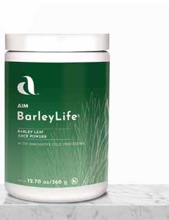 Made up of 37.2 trillion cells, your body continuously balances internal conditions to keep you functioning in good health. Supplementing with natural products from AIM can help to fuel whole-body balance. 5 Member $5100 Customer $5450 apple-cherry 12.70 oz/360 g powder Member $5500 Customer $5850 pineapple 9.52 oz/270 g powder Member $4400 Customer $4700 BarleyLife Sample Packs Six single (4 g) servings Member $425 Customer $450 BarleyLife Xtra Barley leaf juice powder containing 18 fruits and vegetables Provides all the health benefits of BarleyLife Available for a limited time only NON GMO GLUTEN FREE VEGAN
