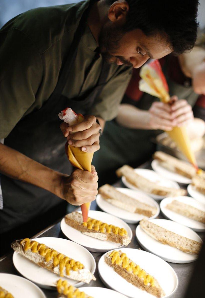 Chef-ecoloog Jim Groot kookt met de missie om de verbinding tussen mens en ecosysteem te versterken door middel van eten. Van pop-ups, catering en velddiners tot workshops over wildplukken, fermentatie en permacultuur, Jim gelooft dat je met voedsel voor leven zorgt. Dat gaat over de aarde onder onze voeten waar ons eten groeit tot de microben die in ons eigen lichaam leven. Zijn focus ligt op lokaal geproduceerde, biologische en seizoensgebonden ingrediënten, de ecologische voetafdruk minimaliseren en kleinschalige, milieuvriendelijke boeren ondersteunen. Fermentatie is zijn secret sauce. Jim vertelt een verhaal dat gaat van bodem tot buik, waarbij hij eer betoont aan de boeren, (voedselbos) telers, en wilde natuur die elk ingrediënt tot leven brengen.