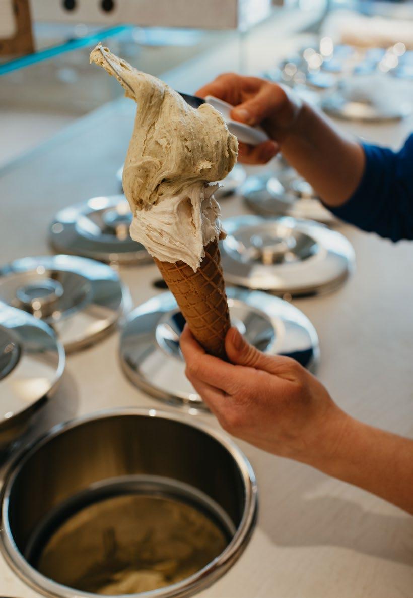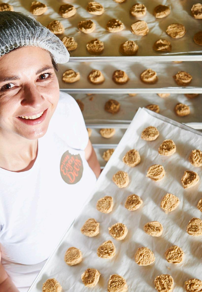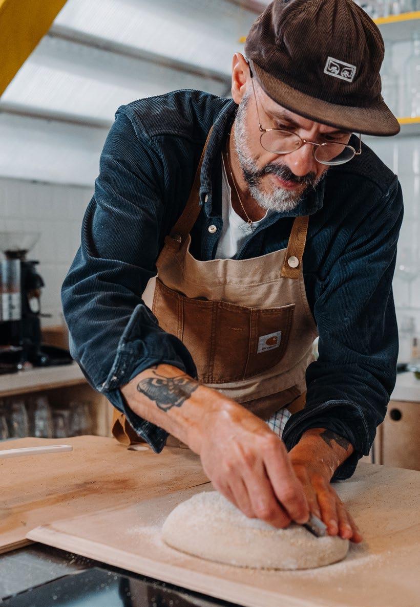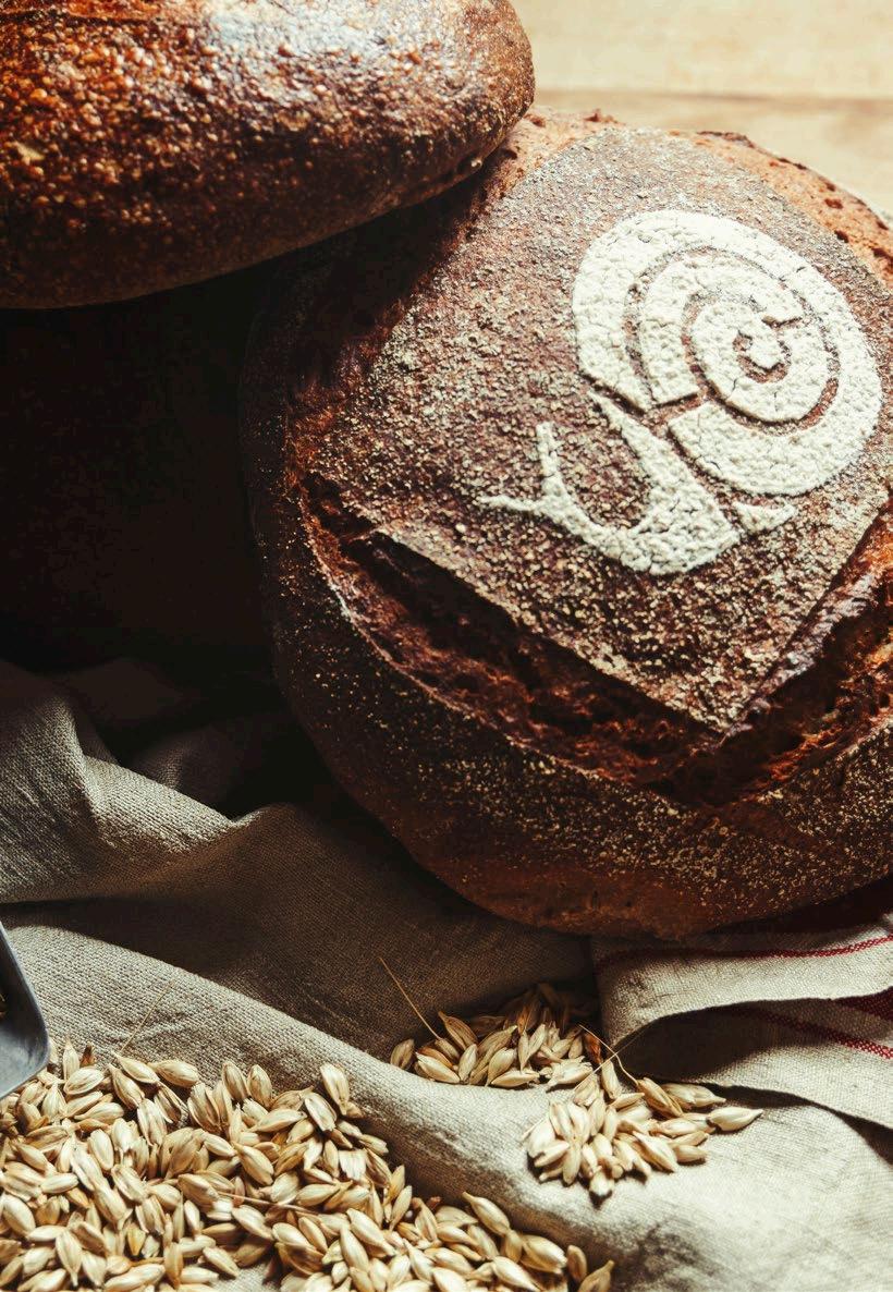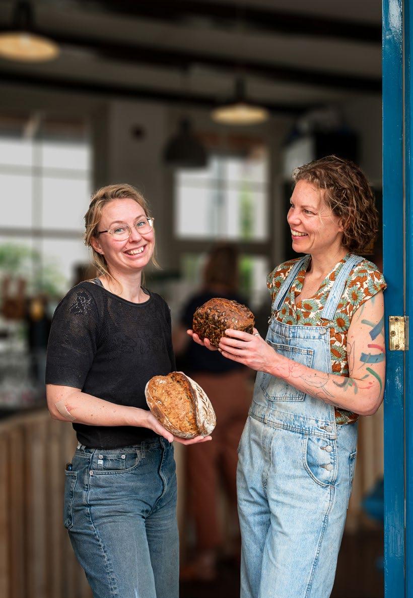 ‘Plofbrood’ noemen ze het, fabrieksbrood. Zoals je het over plofkip hebt. Jolien van Es en Lotte Middelkoop van BROOD.revolutie in het Havenkwartier in Deventer bevrijden brood van alles wat er niet in hoort. Desembrood, benadrukken ze, behoeft slechts drie ingrediënten – meel, water en zout (waarvan de eerste twee door spontane fermentatie ook het natuurlijke rijsmiddel, de desem, maken). Het deeg krijgt de tijd om lang te rijzen, te rusten en weer te rijzen. Dat is wat desembrood die heerlijke ‘kauw’ en knapperige korst geeft en beter verteerbaar maakt. Ze werken bovendien met granen die bio(dynamisch) geteeld zijn in de buurt en op steen zijn gemalen tot meel. Ook de extra’s zoals de pompoenpitten, krokant gebakken op de donkere korst, zijn eerlijk en lokaal. Zo smaakt hun biologische desembrood natuurlijk naar meer.