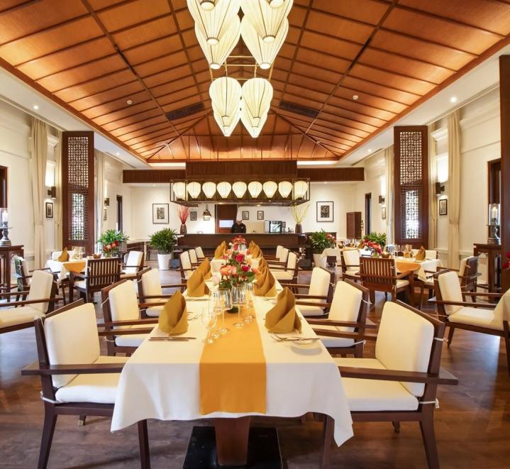 The Colonial Restaurant offers an exquisite fine dining experience that harmoniously blends classical French cuisine with Vietnamese culinary nuances. Designed in the elegantIndochinestyle,therestaurantfeaturesanopenkitchen,agrandpiano,andalush gardencourtyard,creatingasophisticatedambianceforguests.